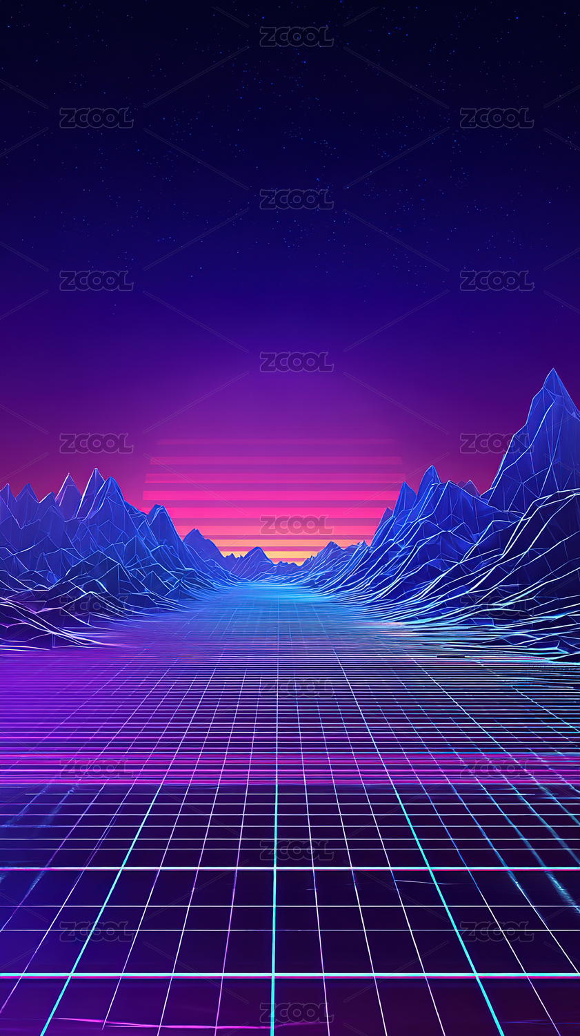 蓝色,深蓝,背景,自然,网格,渐变,梦幻,太阳,山脉,紫色