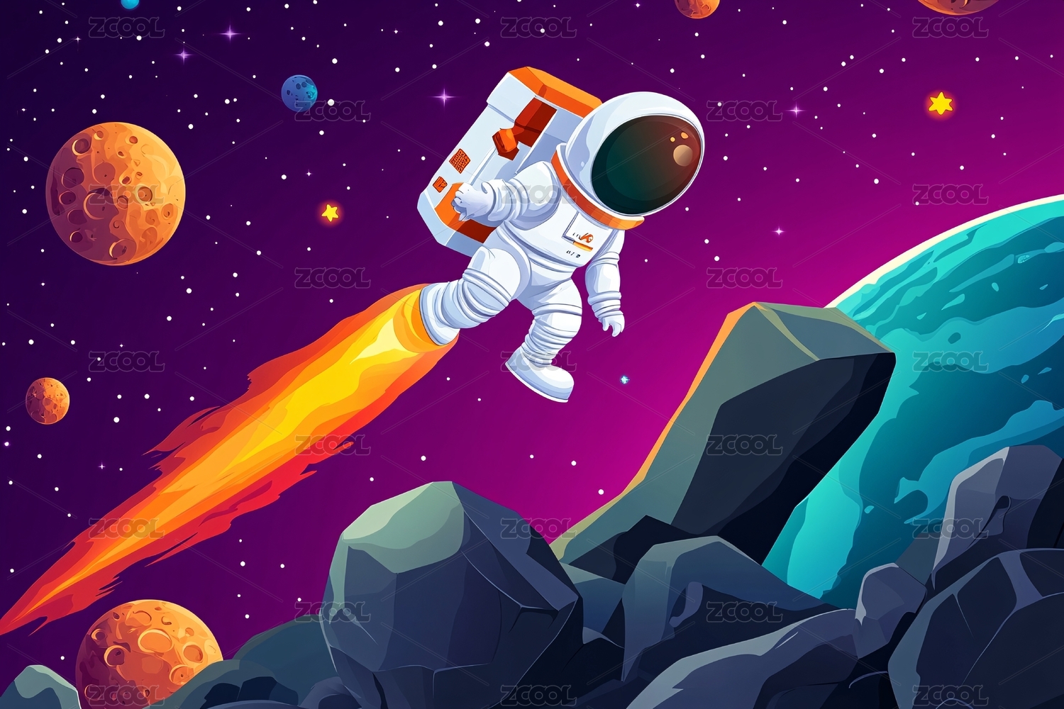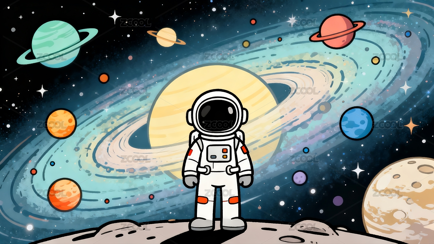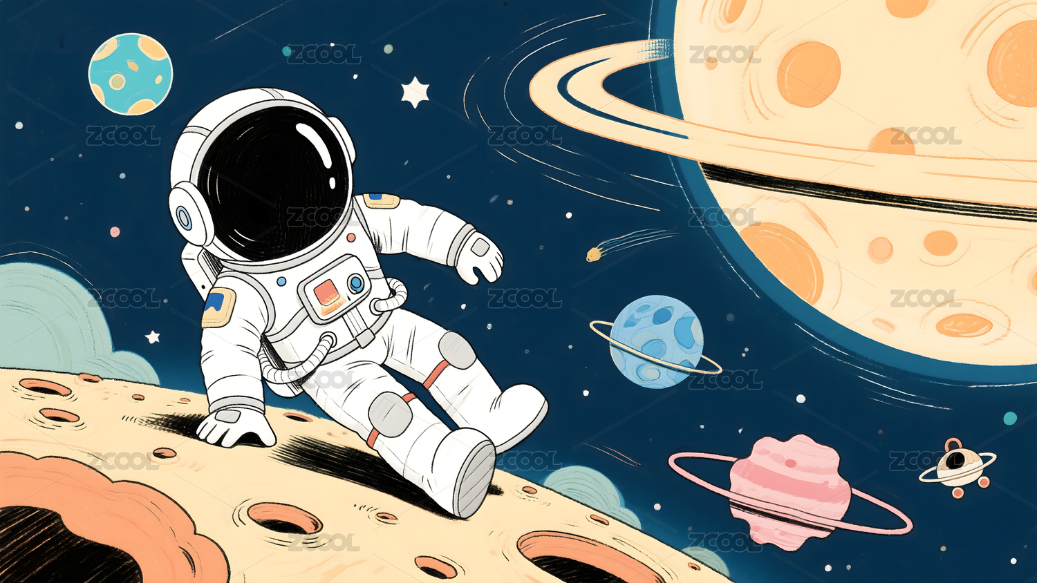 卡通可爱宇航员星球插画