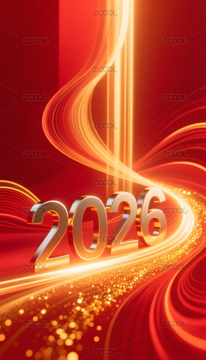 金色数字2026与红色光带背景