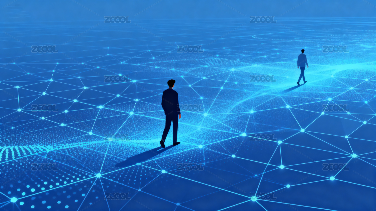 网络连接节点与人影剪影图