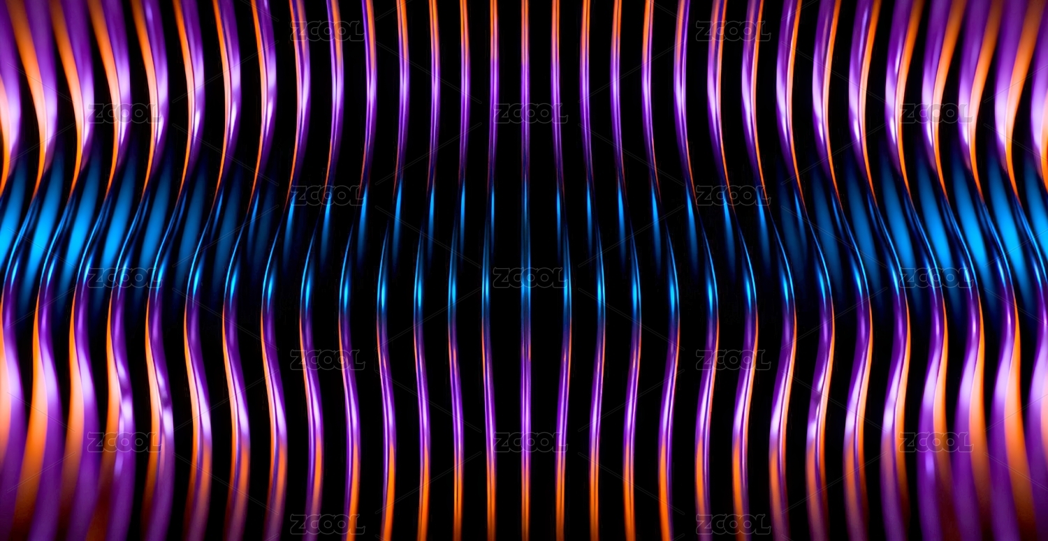彩色线条、全息金属箔彩虹波抽象纹理背景。
