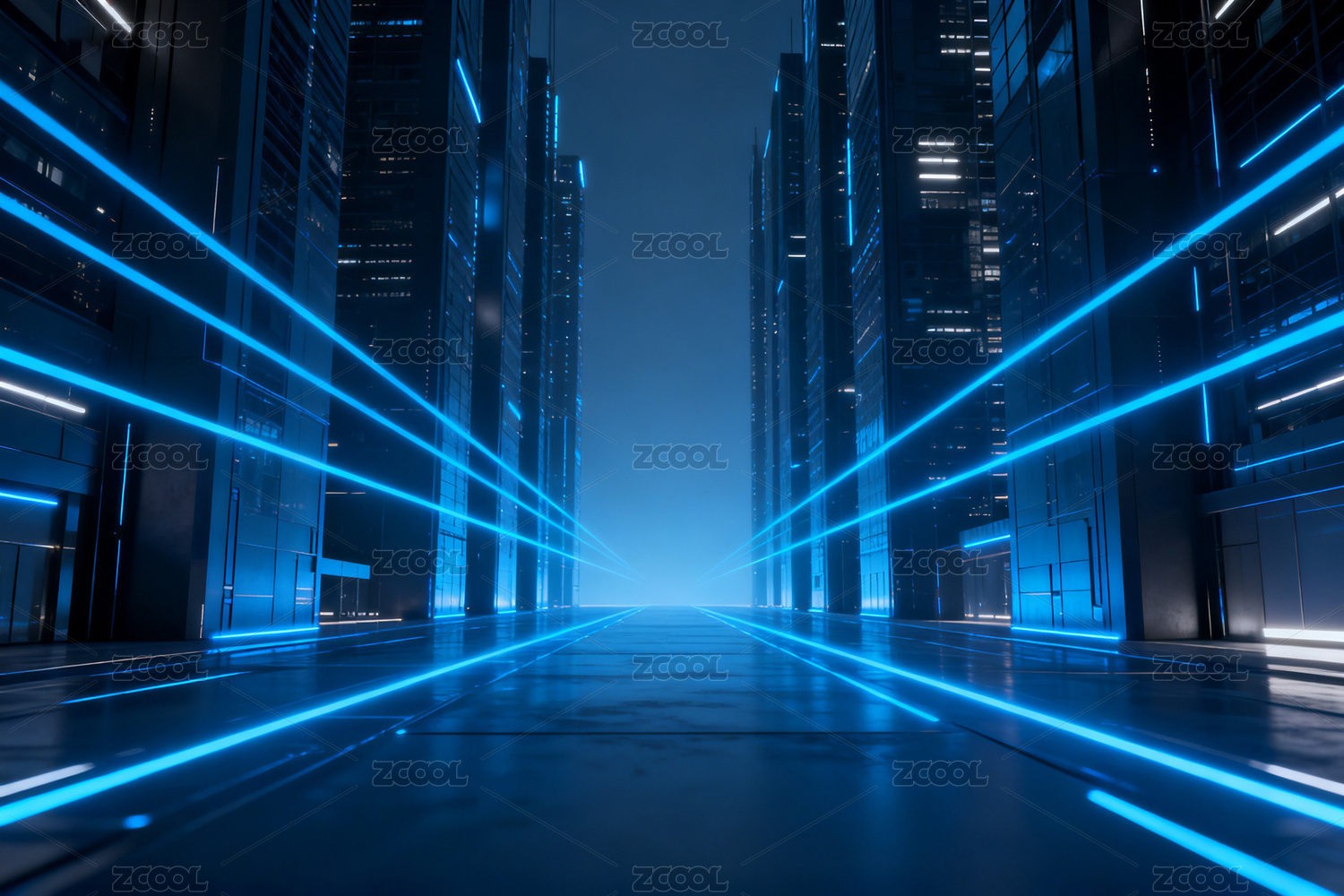 线条,科技,未来,蓝色,发光,设计,走廊,城市,高楼,光影