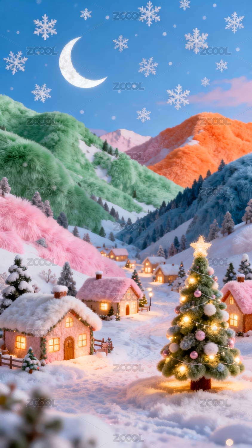 主视觉,商业,壁纸,圣诞,小镇,冬日,夜景,房屋,雪景,灯光