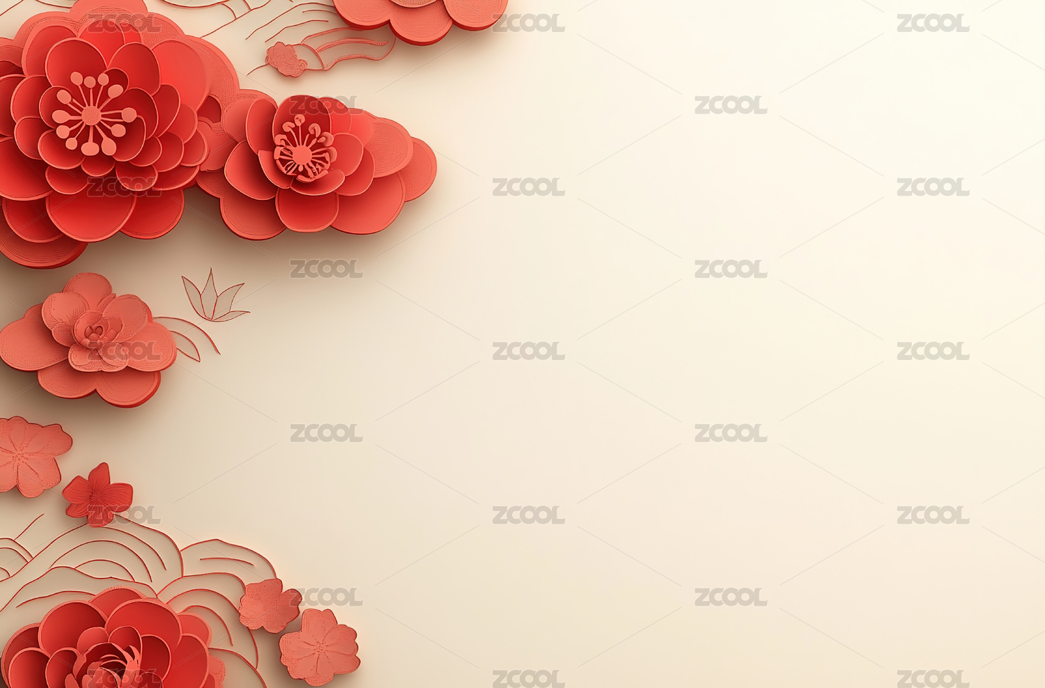 中国风红色花朵剪纸艺术