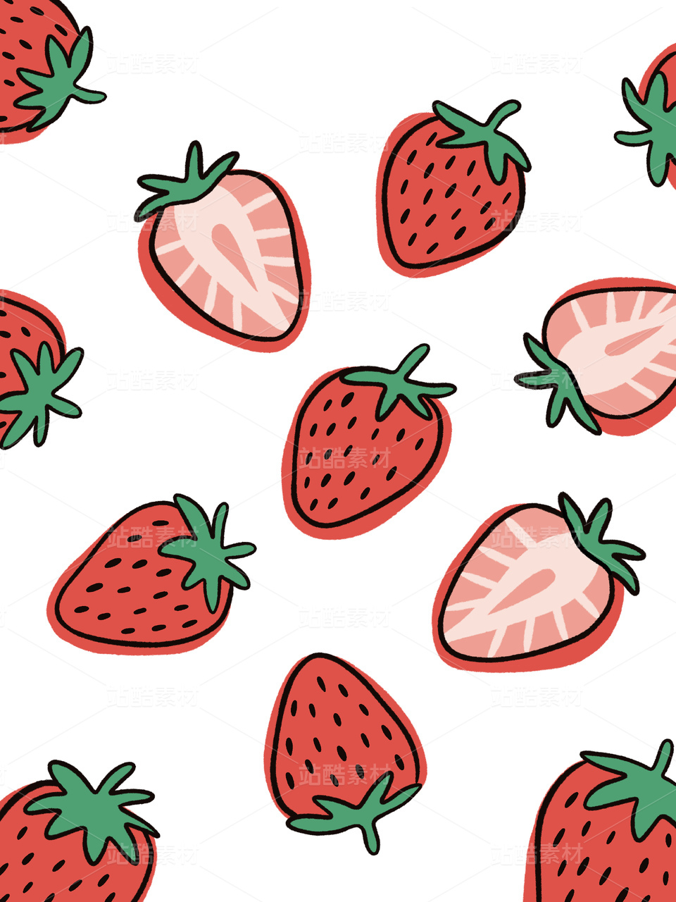 可爱手绘草莓图案素材