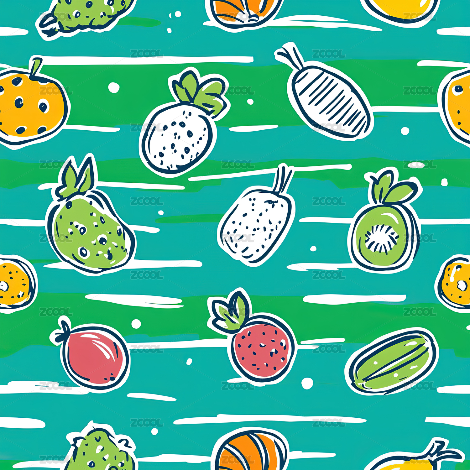 可爱手绘水彩水果背景底纹家纺包装图案