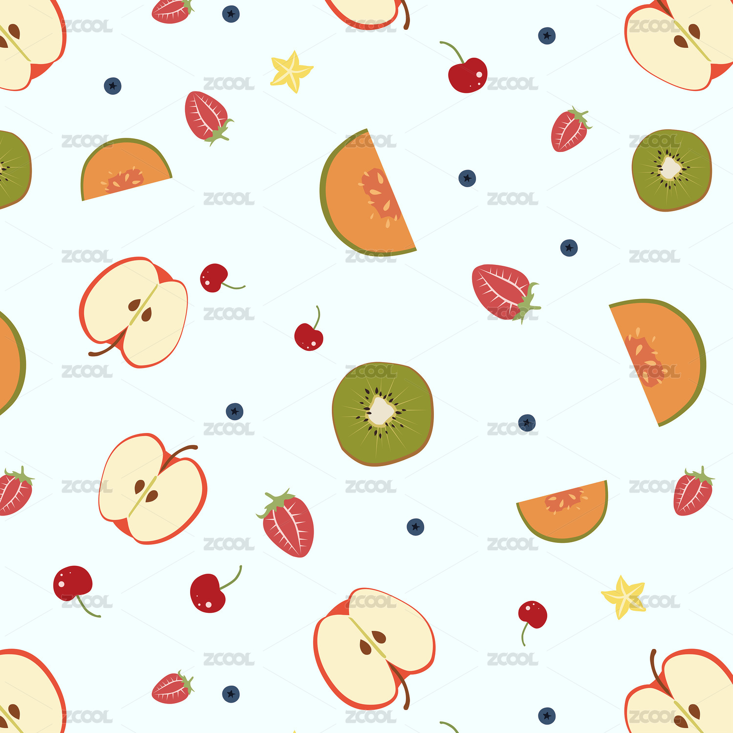 卡通混合水果平铺图案