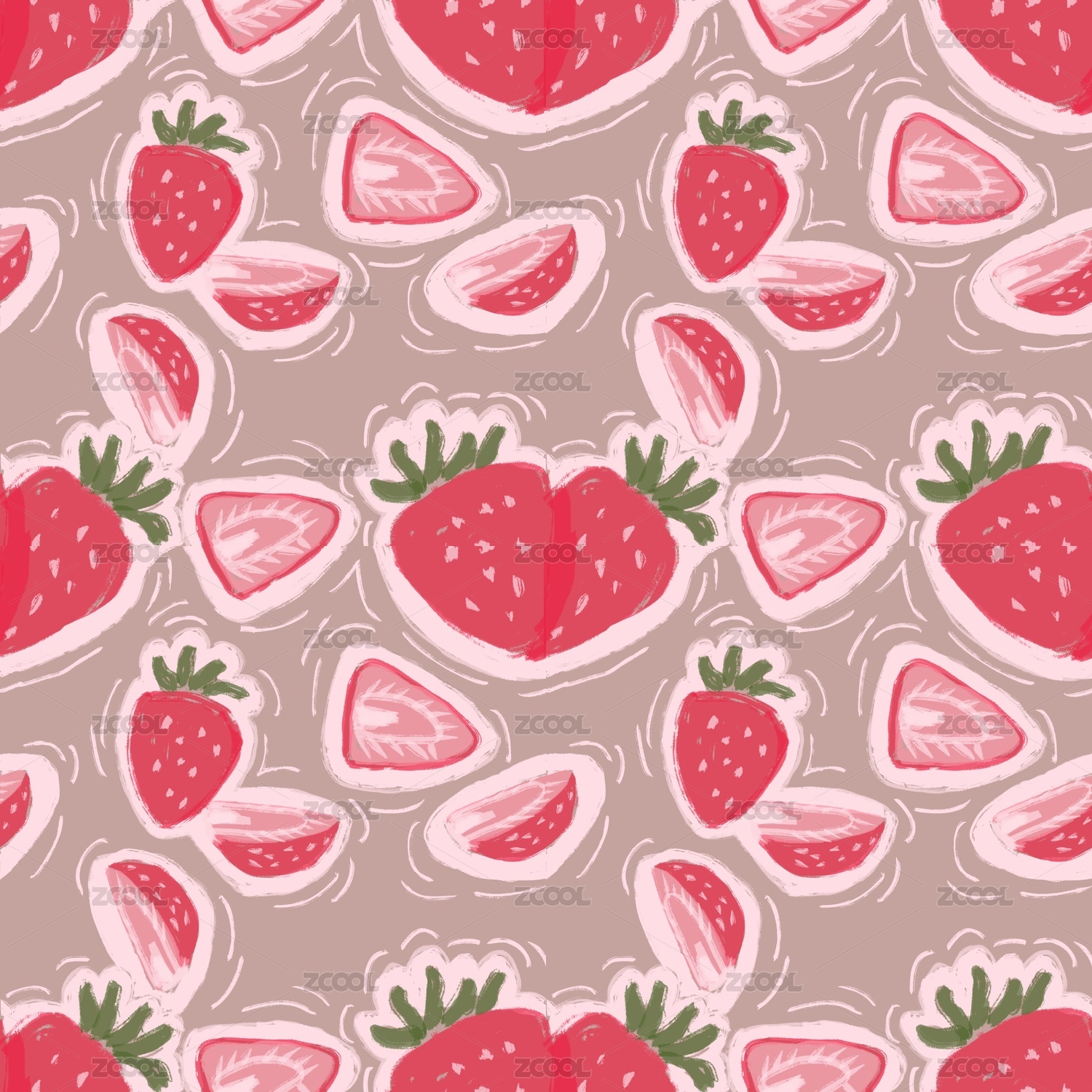 草莓满印印花四方连续图案