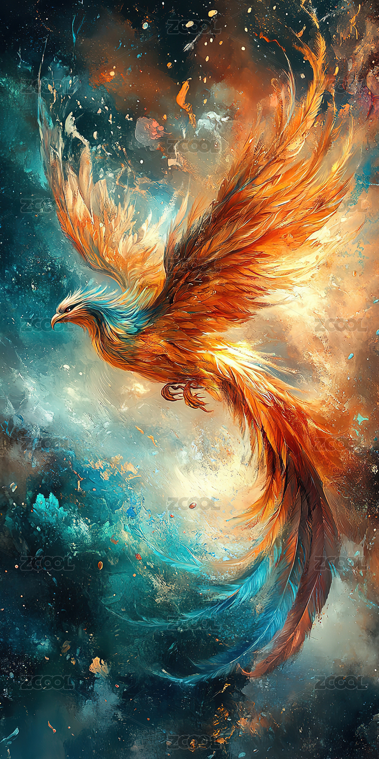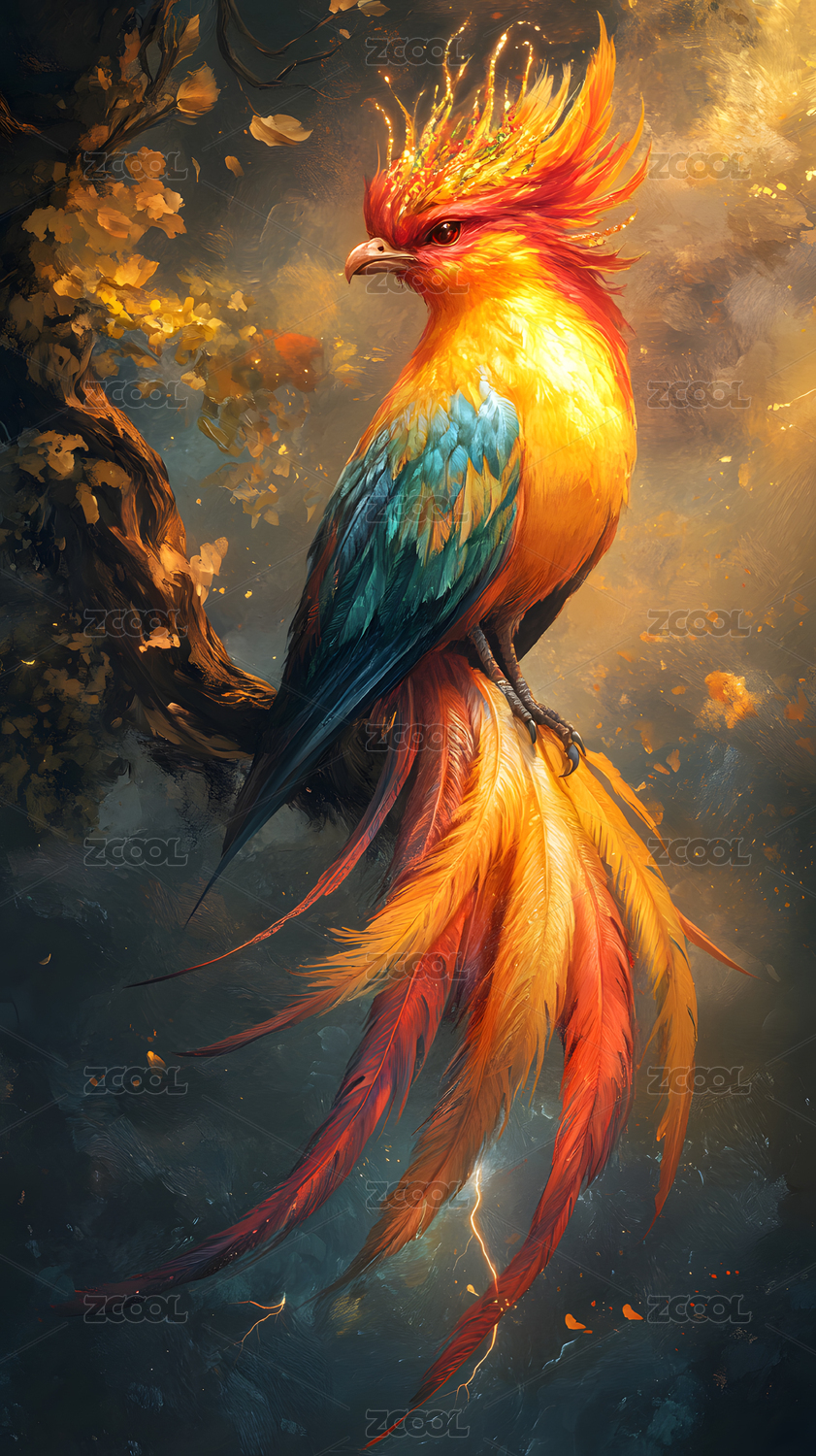 中国古代神话凤凰神兽国潮风格节日艺术背景