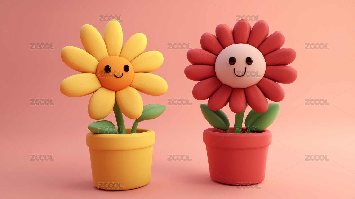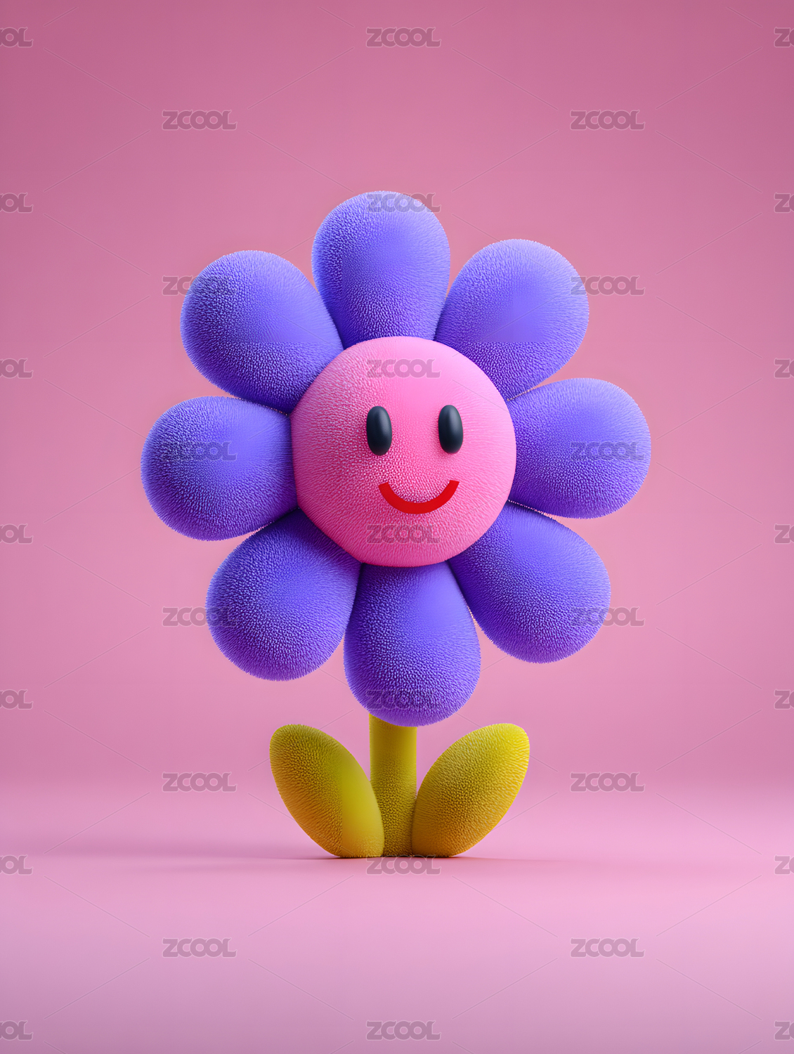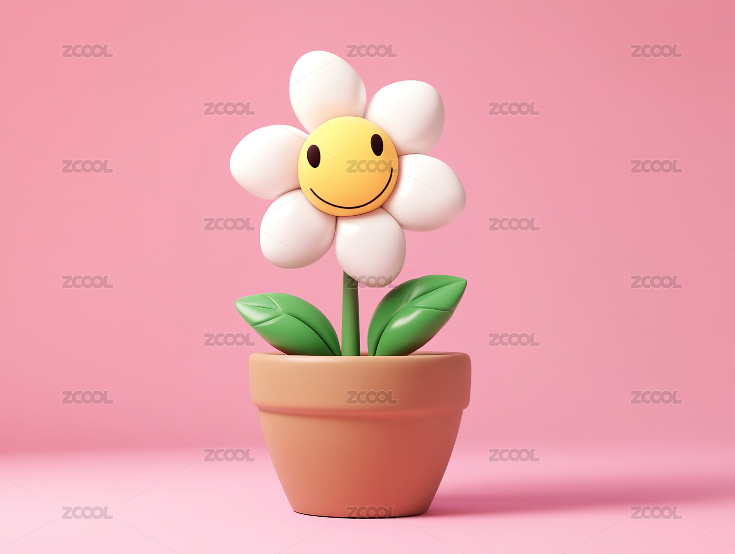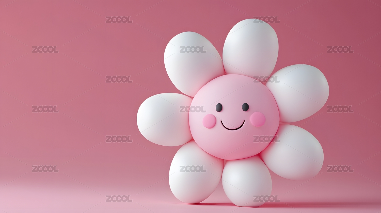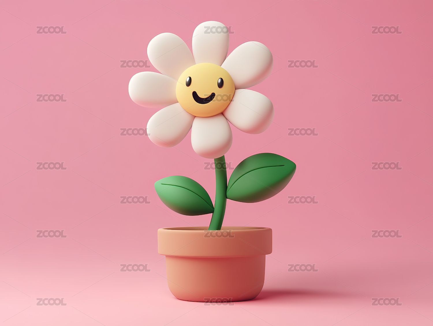 卡通风格的可爱花朵,粉色和绿色渐变的3D