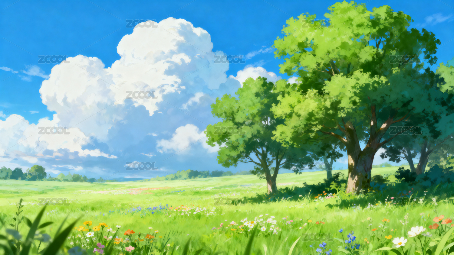 植物,自然,清新,生机,云朵,树木,风景,天空,绿草,阳光
