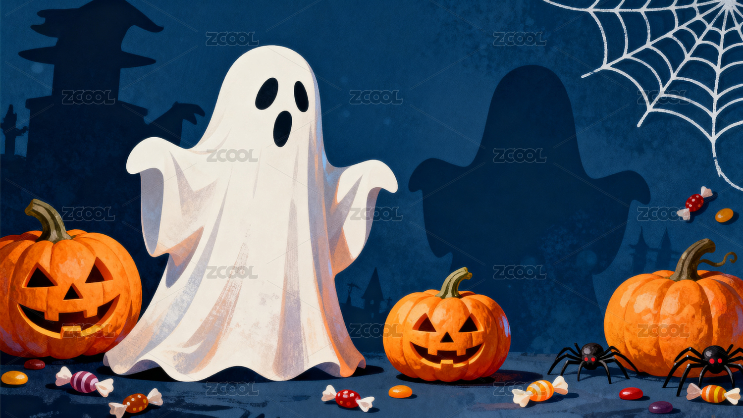 万圣节南瓜幽灵蝙蝠蜘蛛网