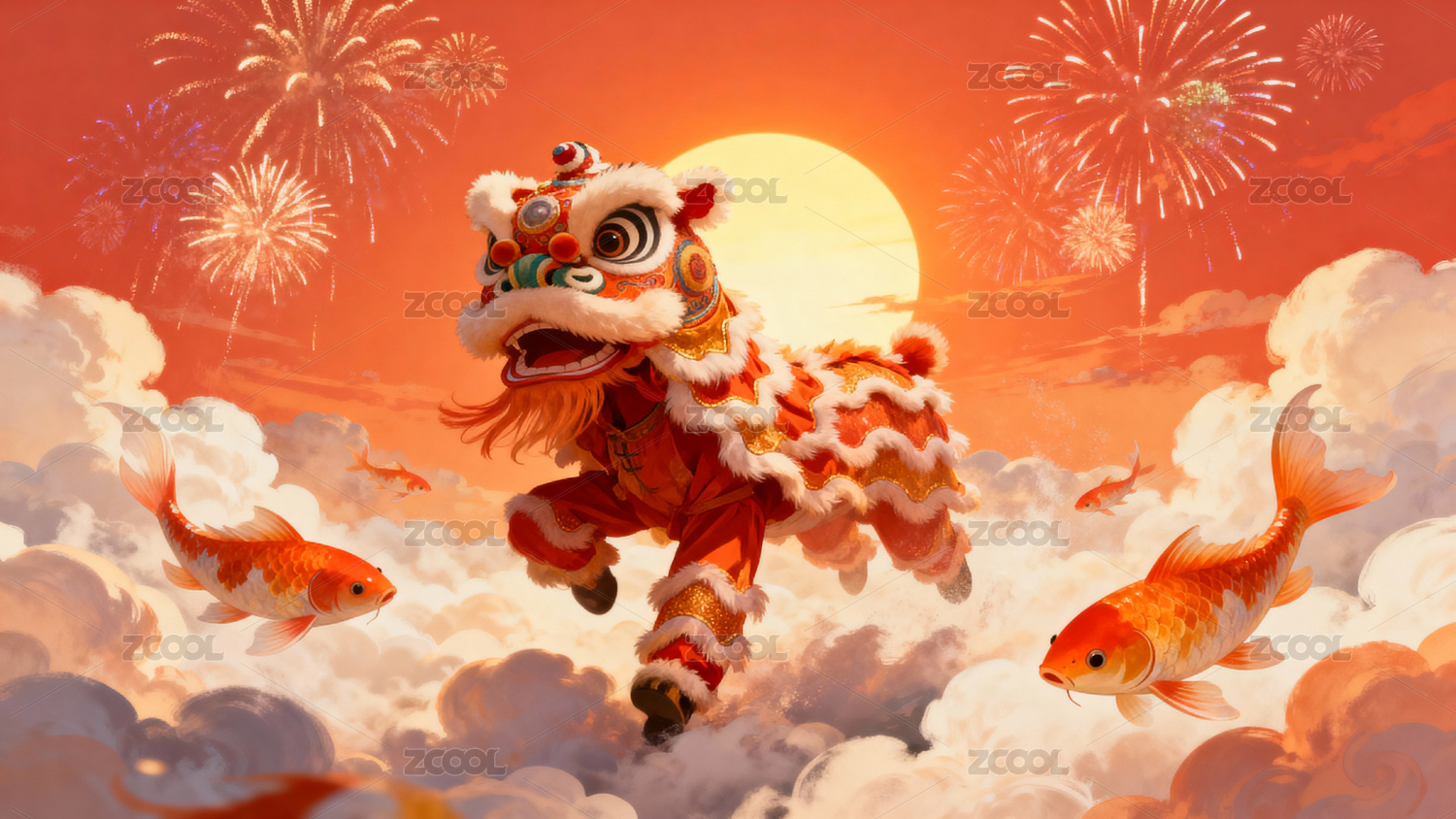 装饰,节日,传统,喜庆,光影,文化,艺术,东方,舞狮,灯笼