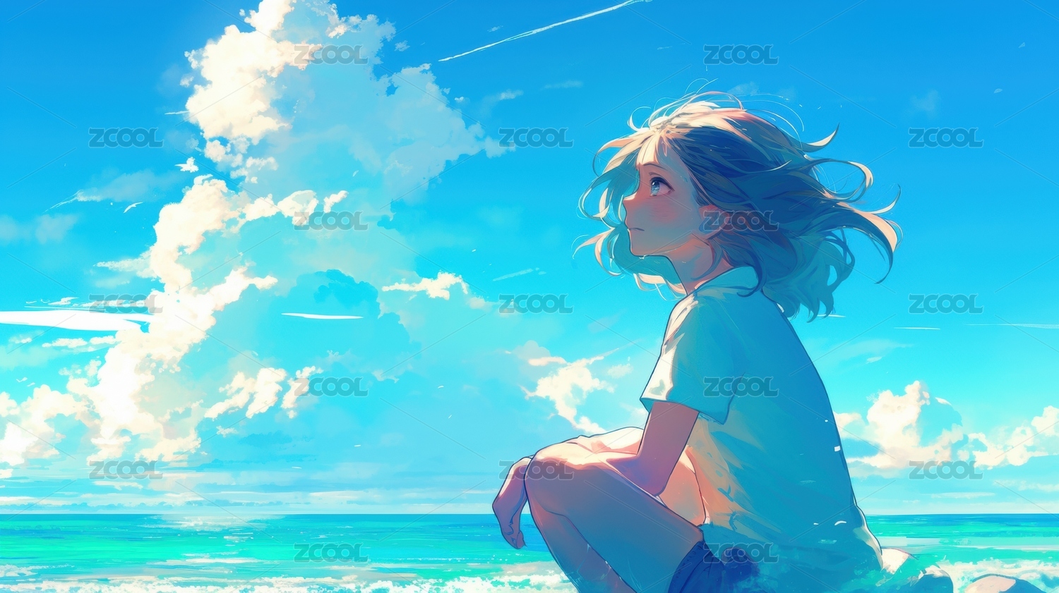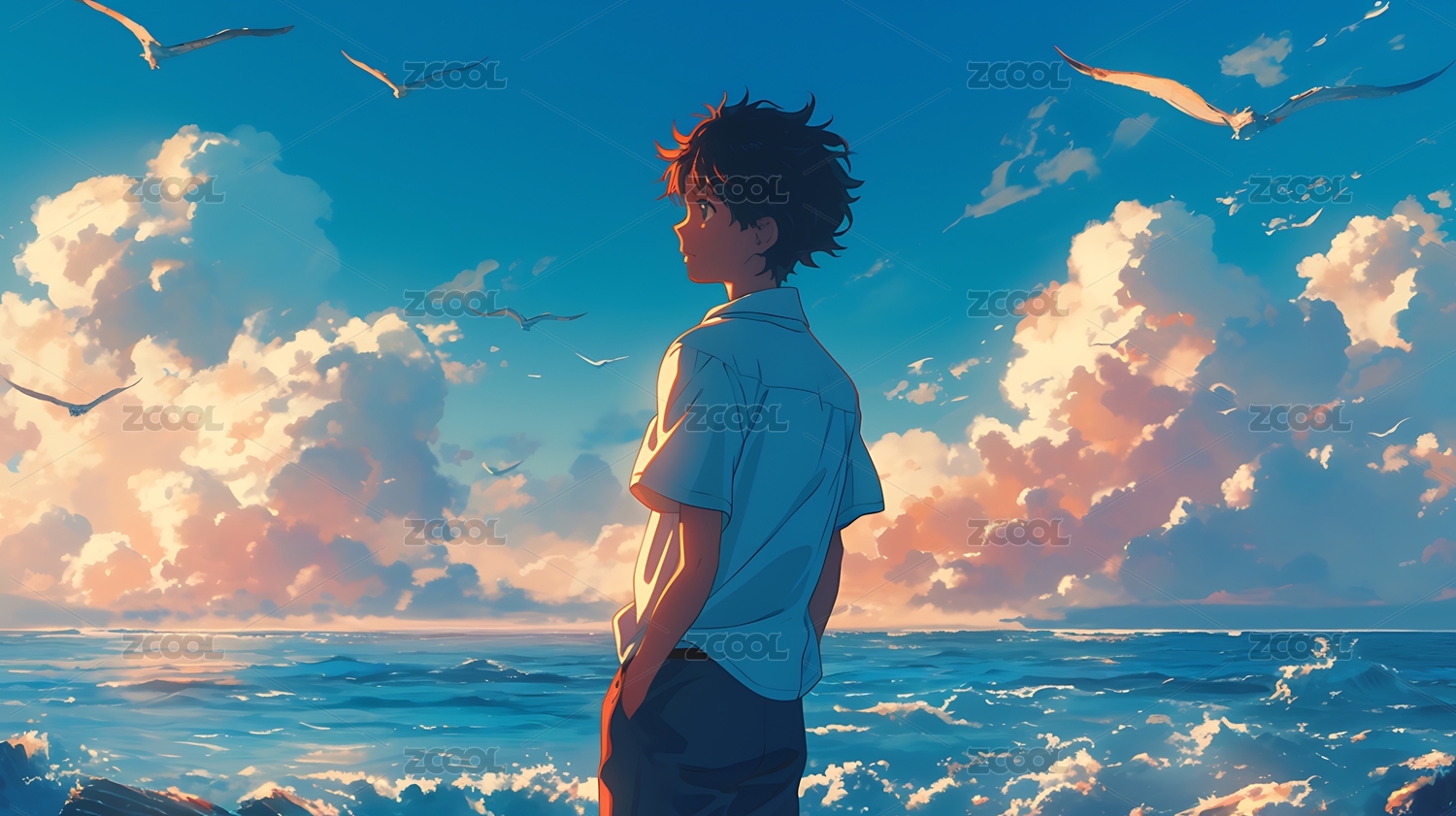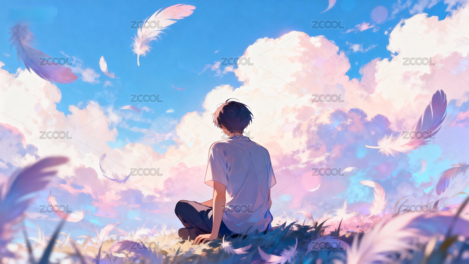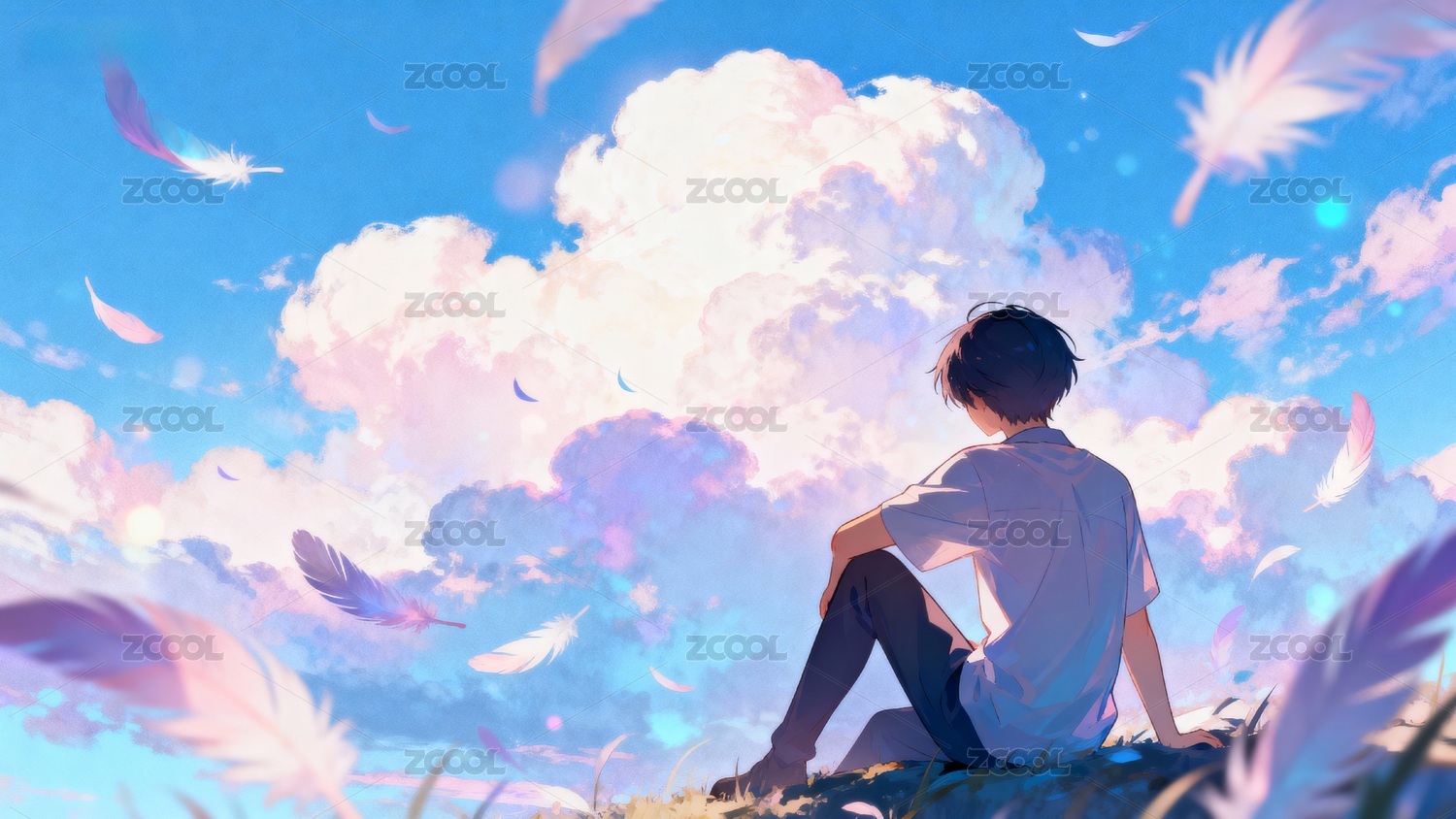 艺术,天空,风景,宁静,动漫,休闲,少年,羽毛,云朵,飞舞