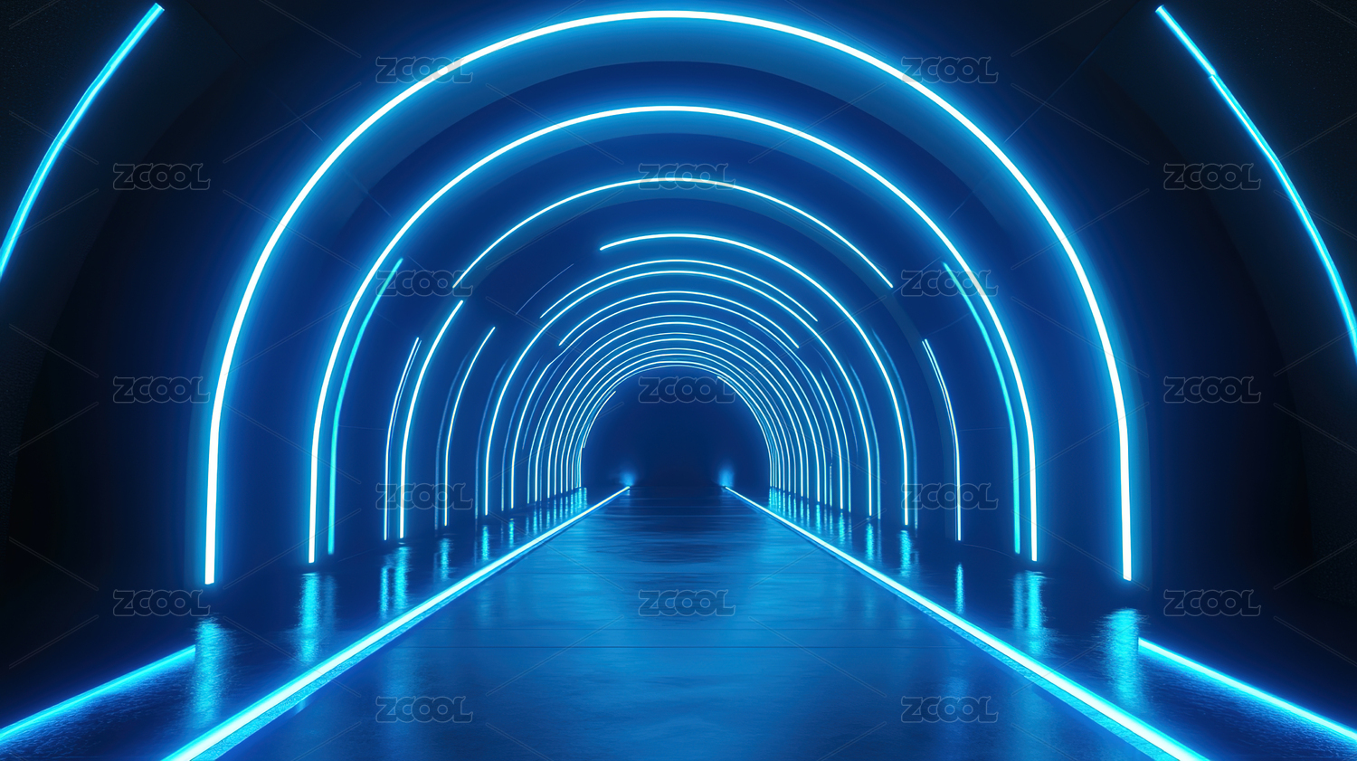 蓝色荧光拱门隧道