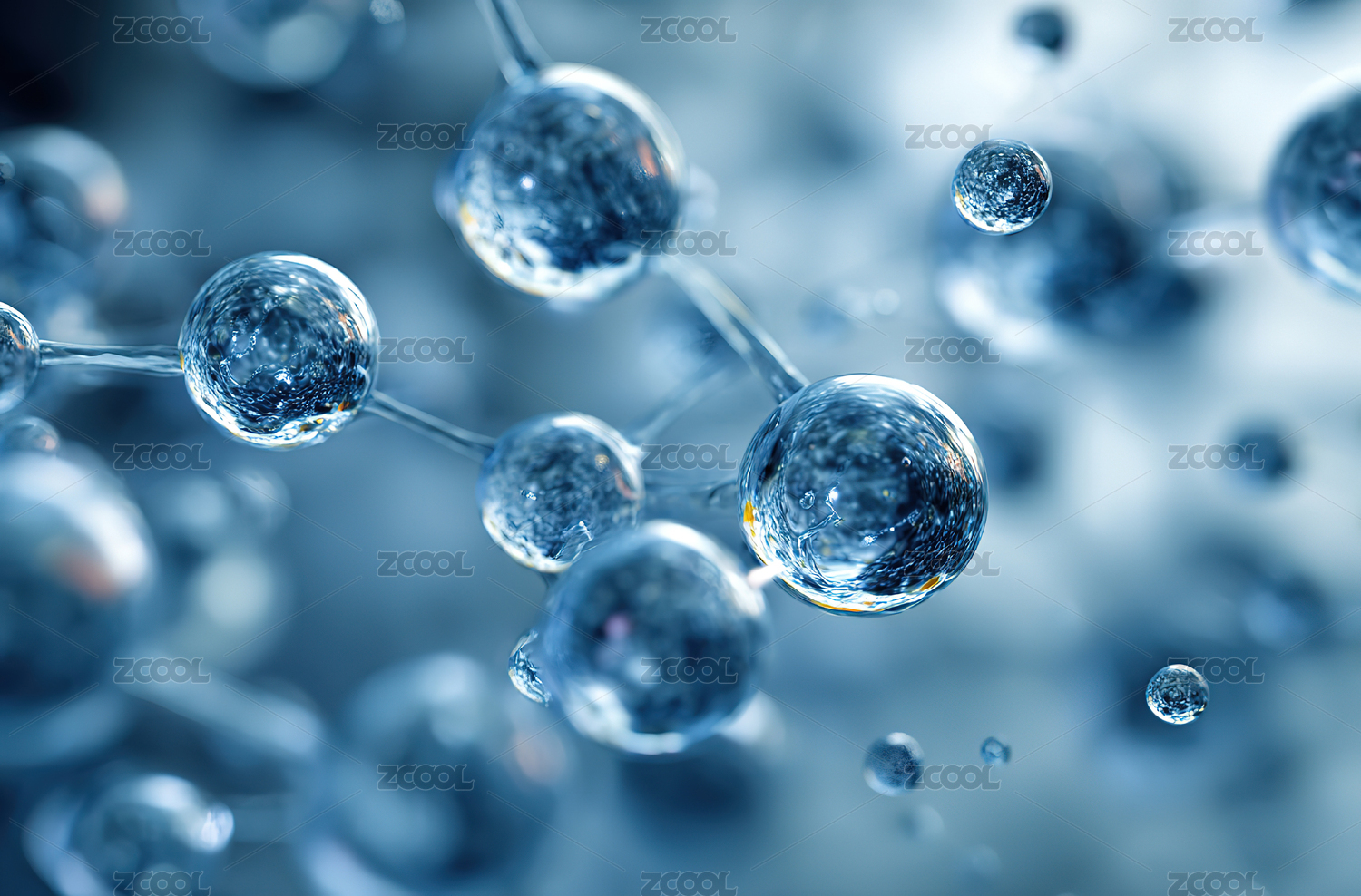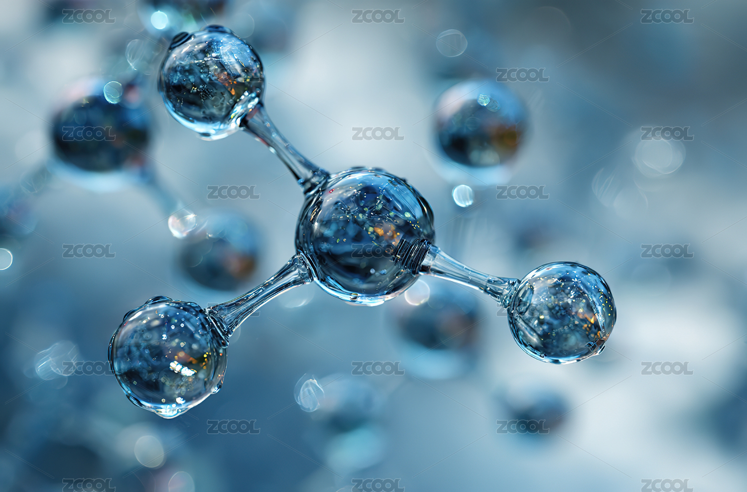 水分子结构 晶莹剔透 蓝色科技感