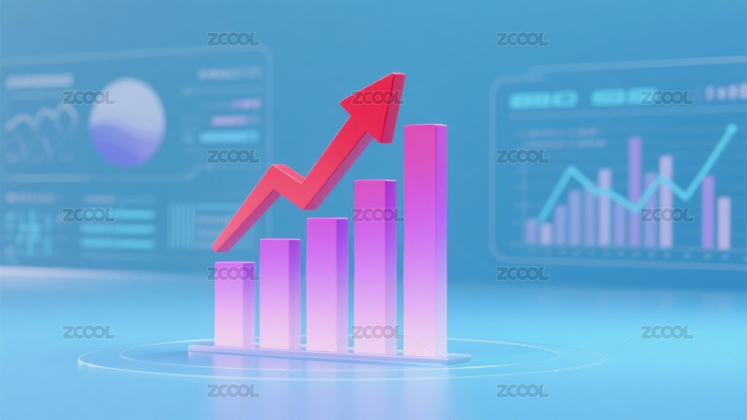 紫蓝色几何金融经济柱状图插画背景壁纸