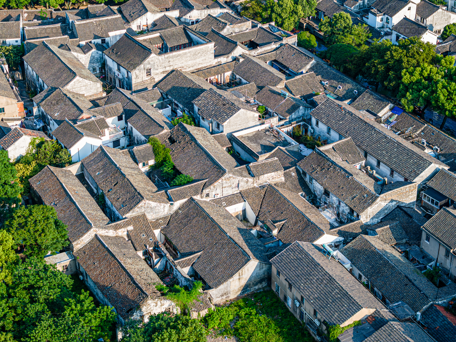 中国江苏省新沂市窑湾古镇民居屋顶园林建筑