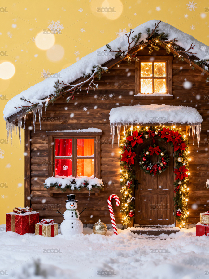 雪夜圣诞小屋温馨场景