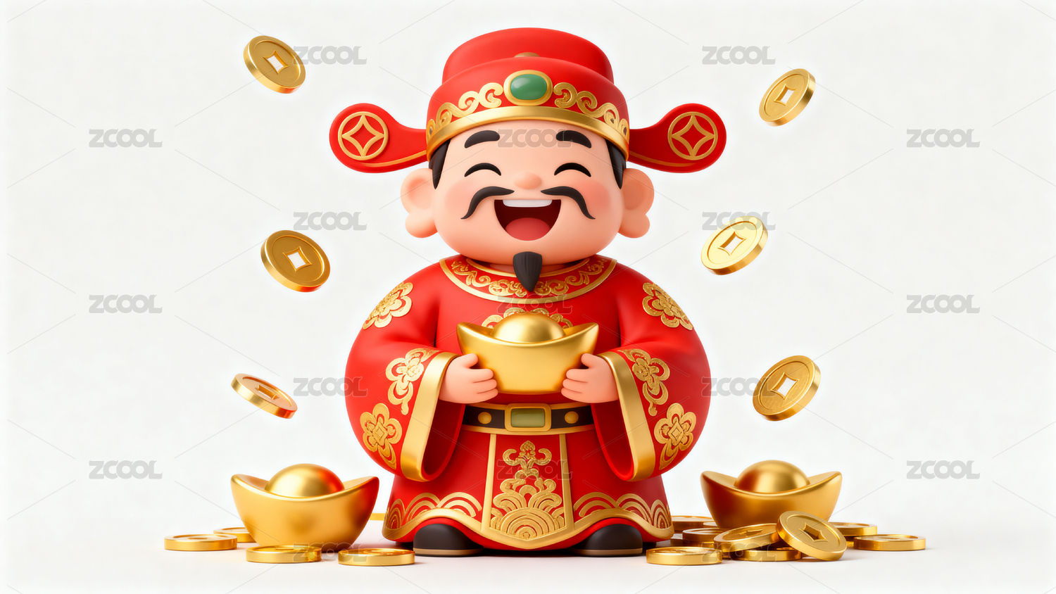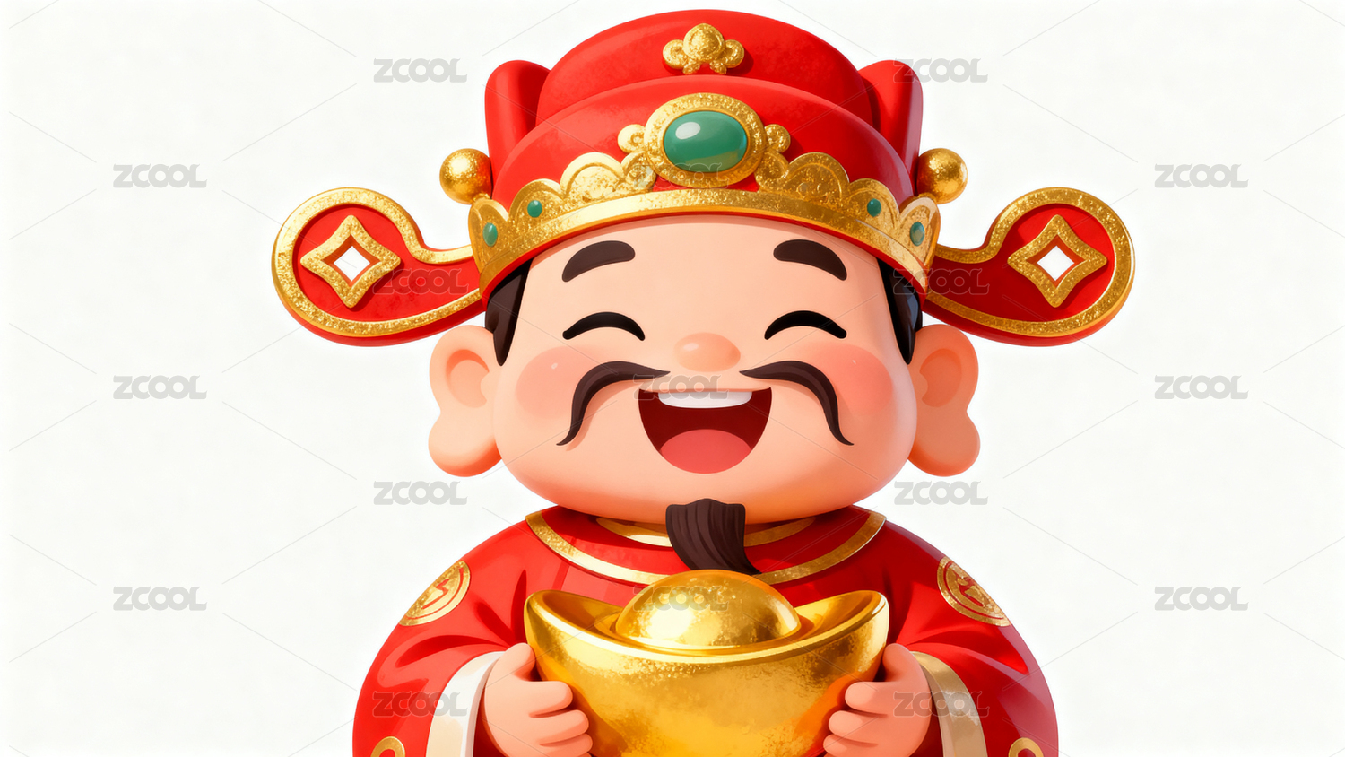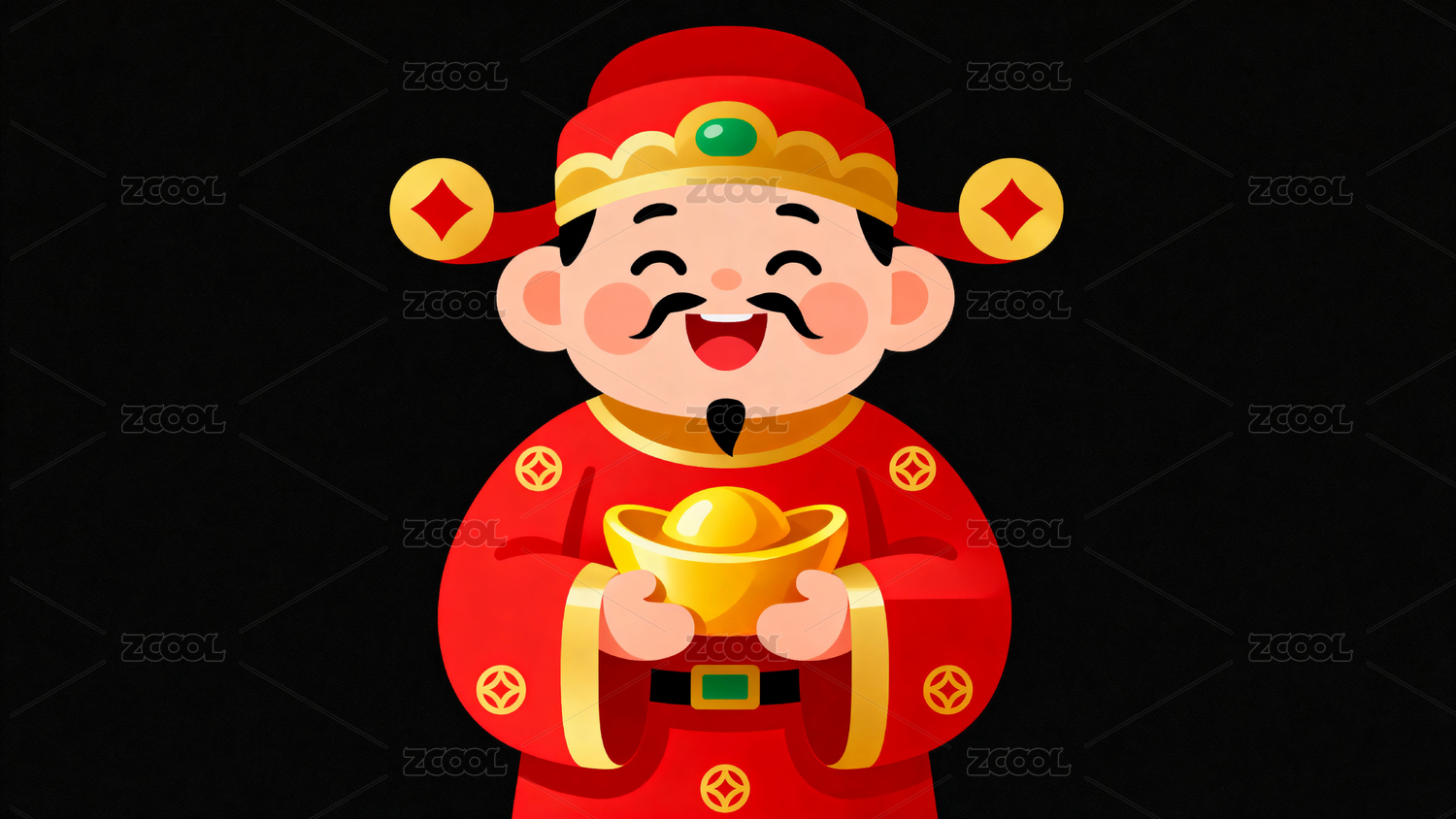 财神爷手持金元宝喜庆迎春