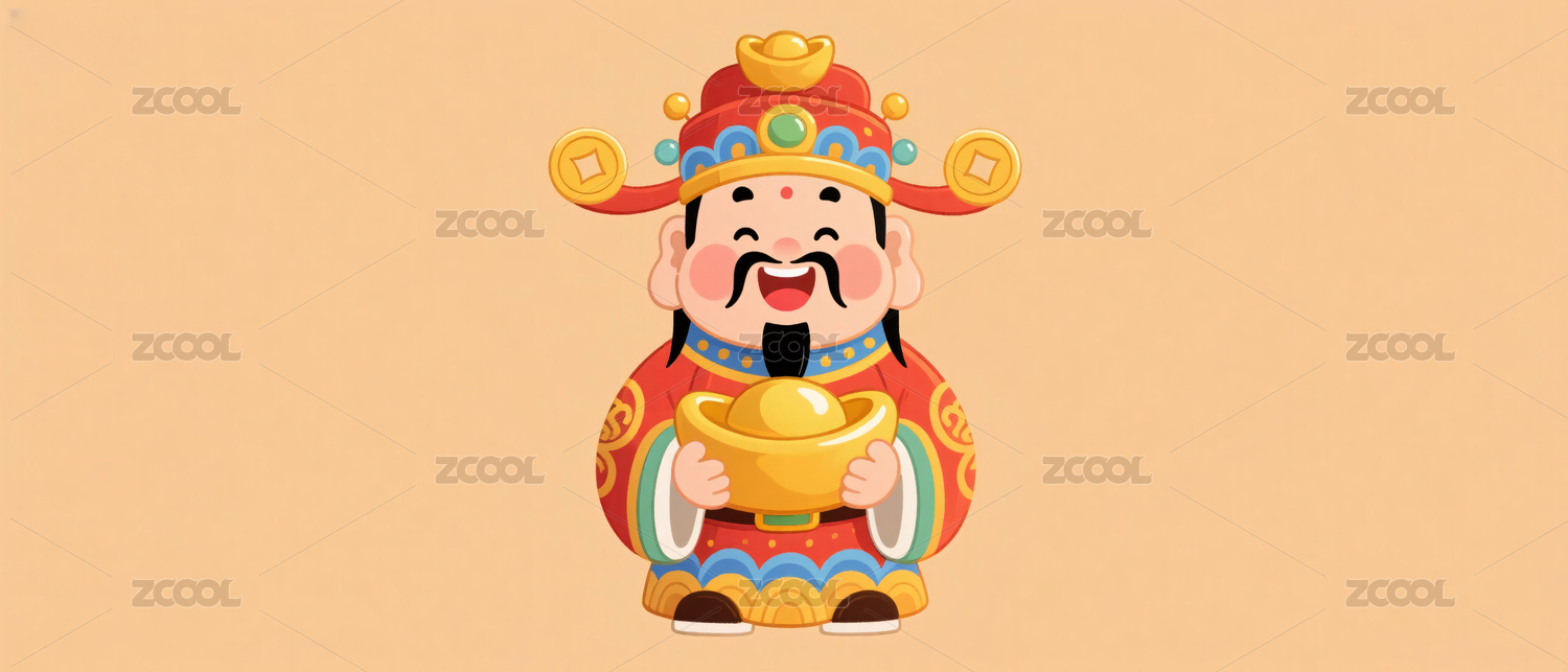 卡通财神爷喜庆迎新年