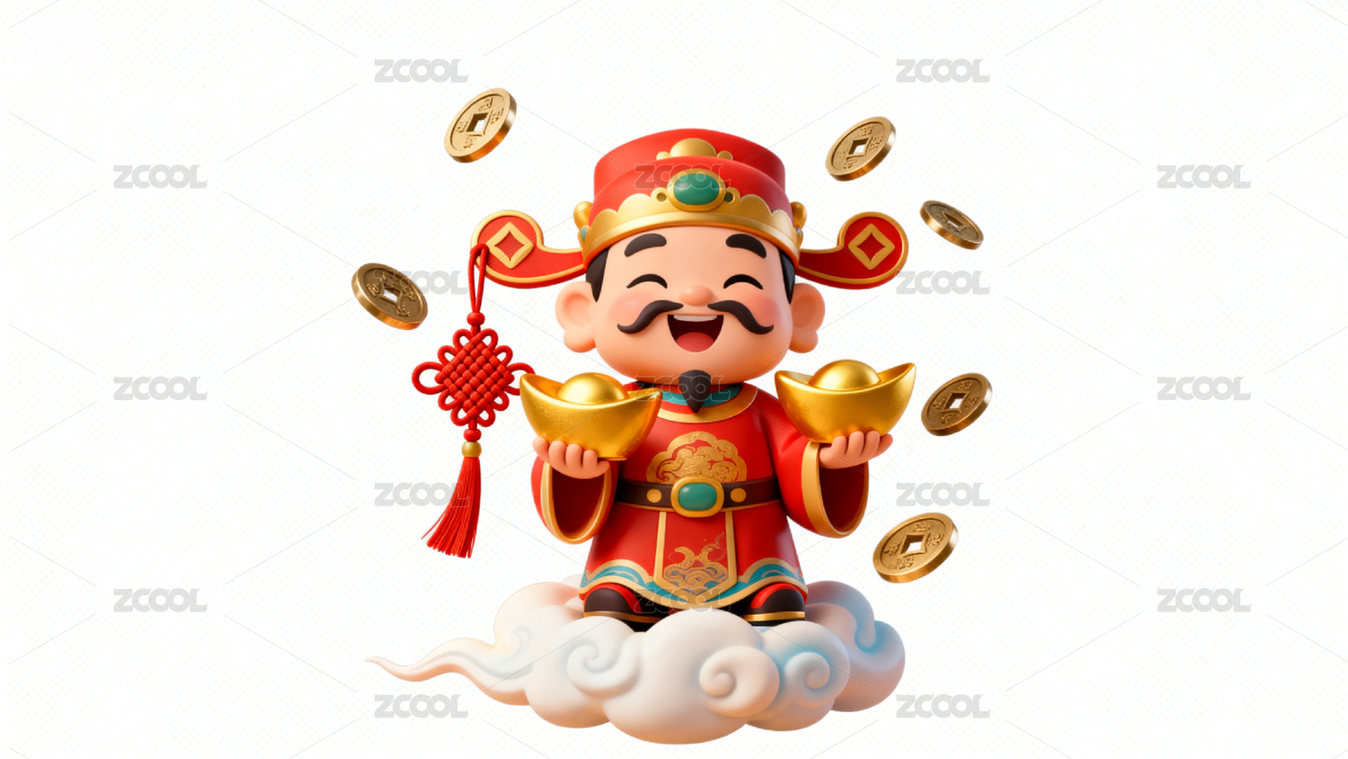 红色财神手持卷轴金币环绕