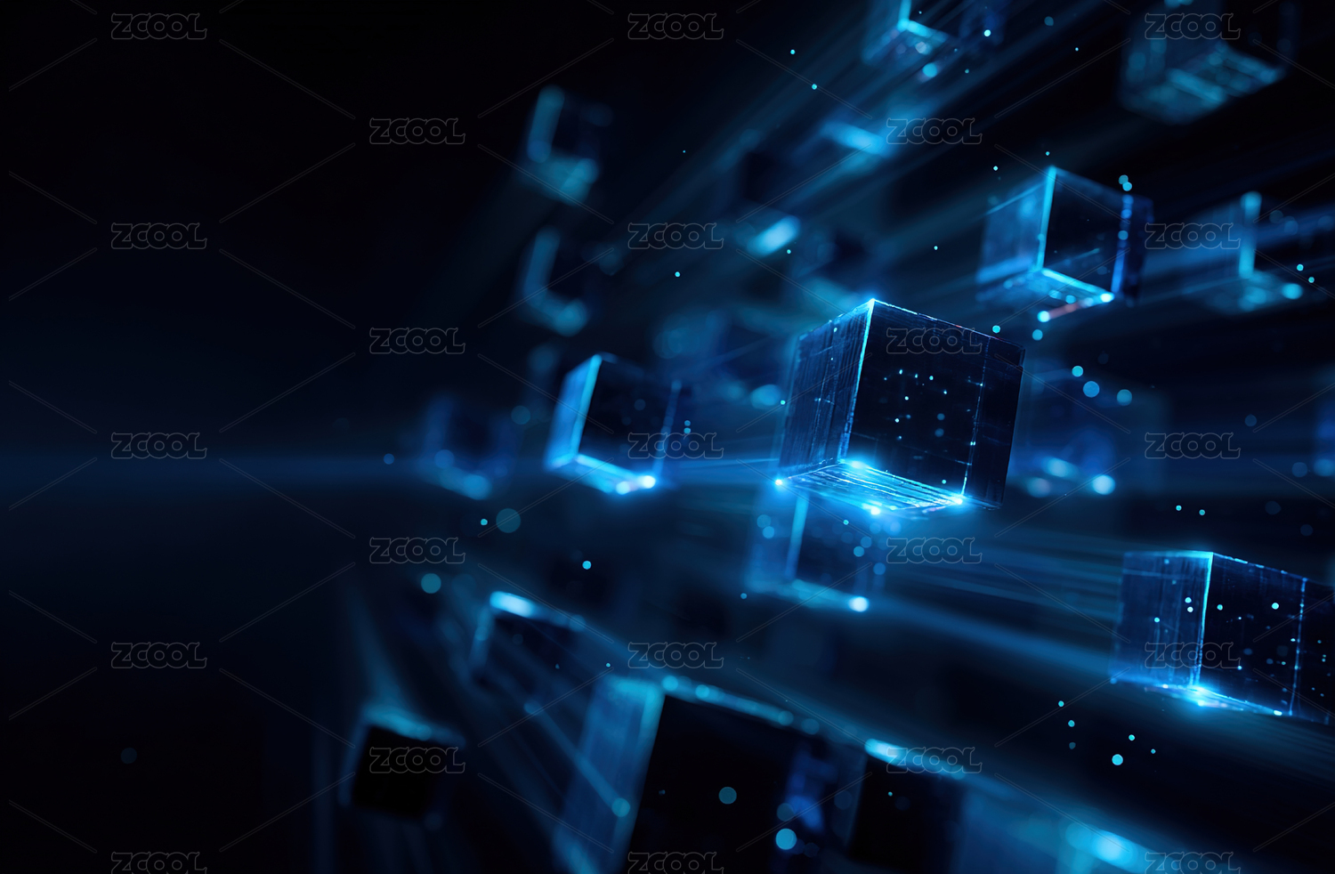 蓝色发光立方体科技场景