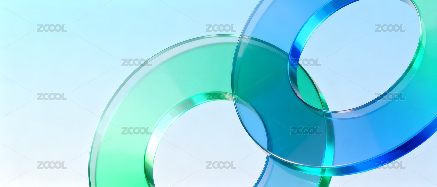 蓝绿透明圆环交错叠放