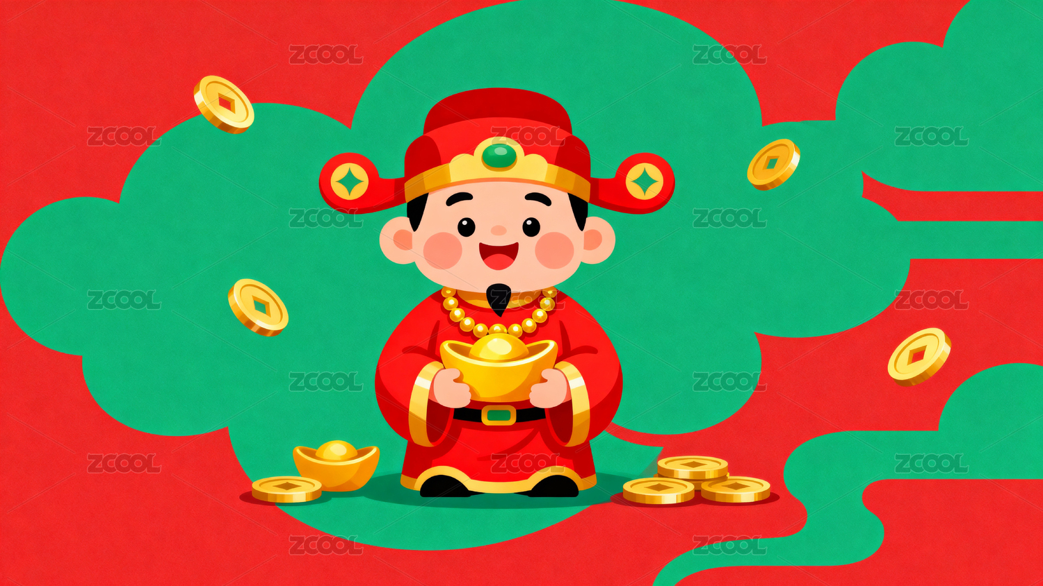 红色,装饰,节日,喜庆,传统,祝福,金元宝,笑容,帽子,绿色