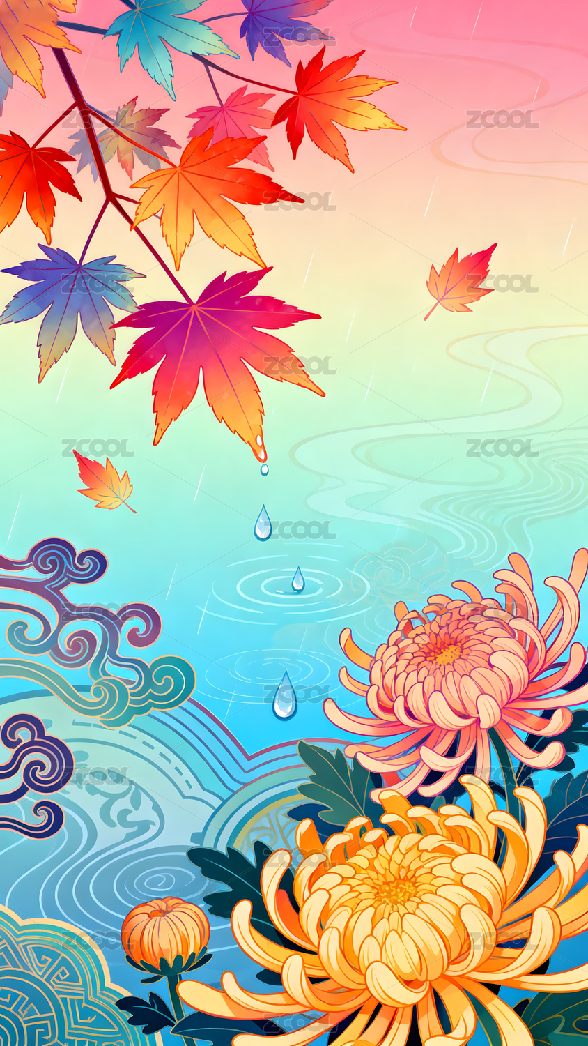 菊花山水国潮节日插画