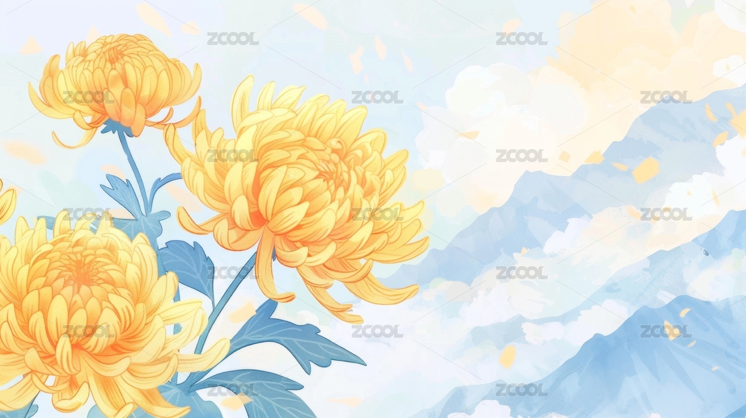 菊花山水国潮节日插画
