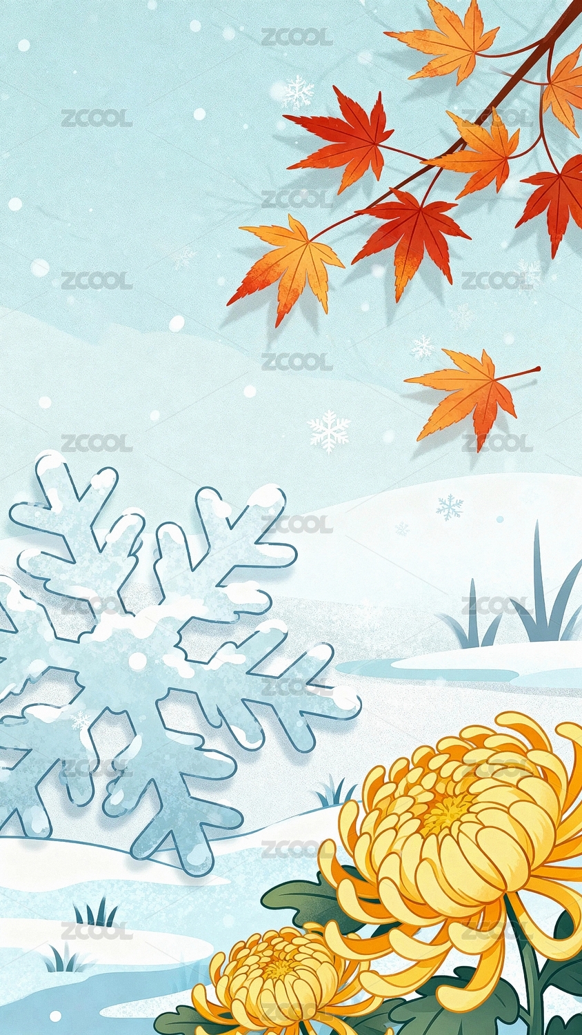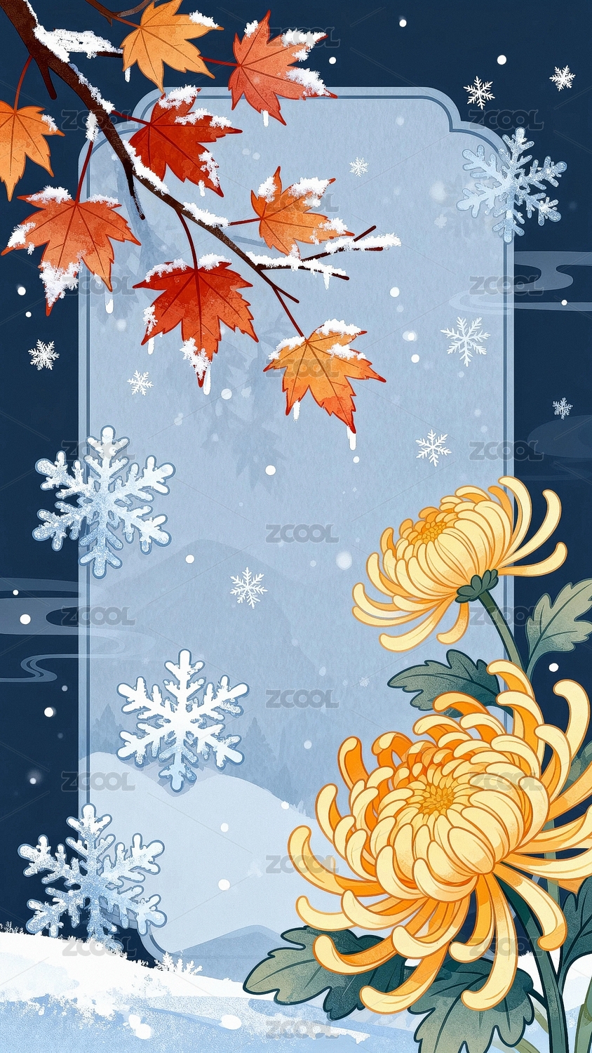 霜降,冰霜,立冬,白露,小雪,雪花,中国风,下雪,国潮,展板