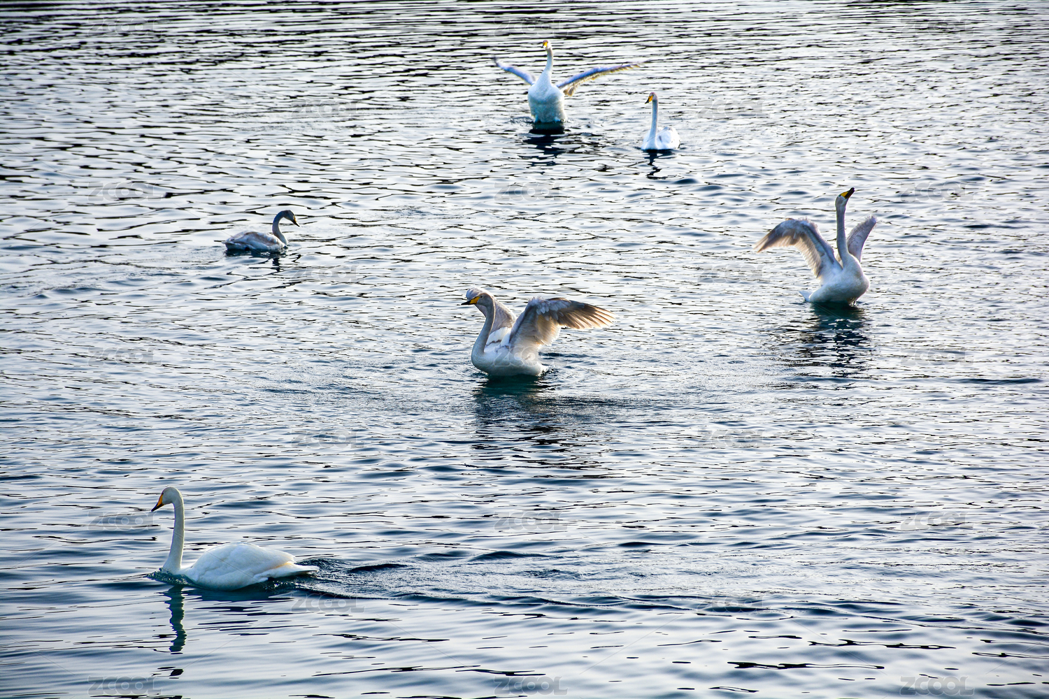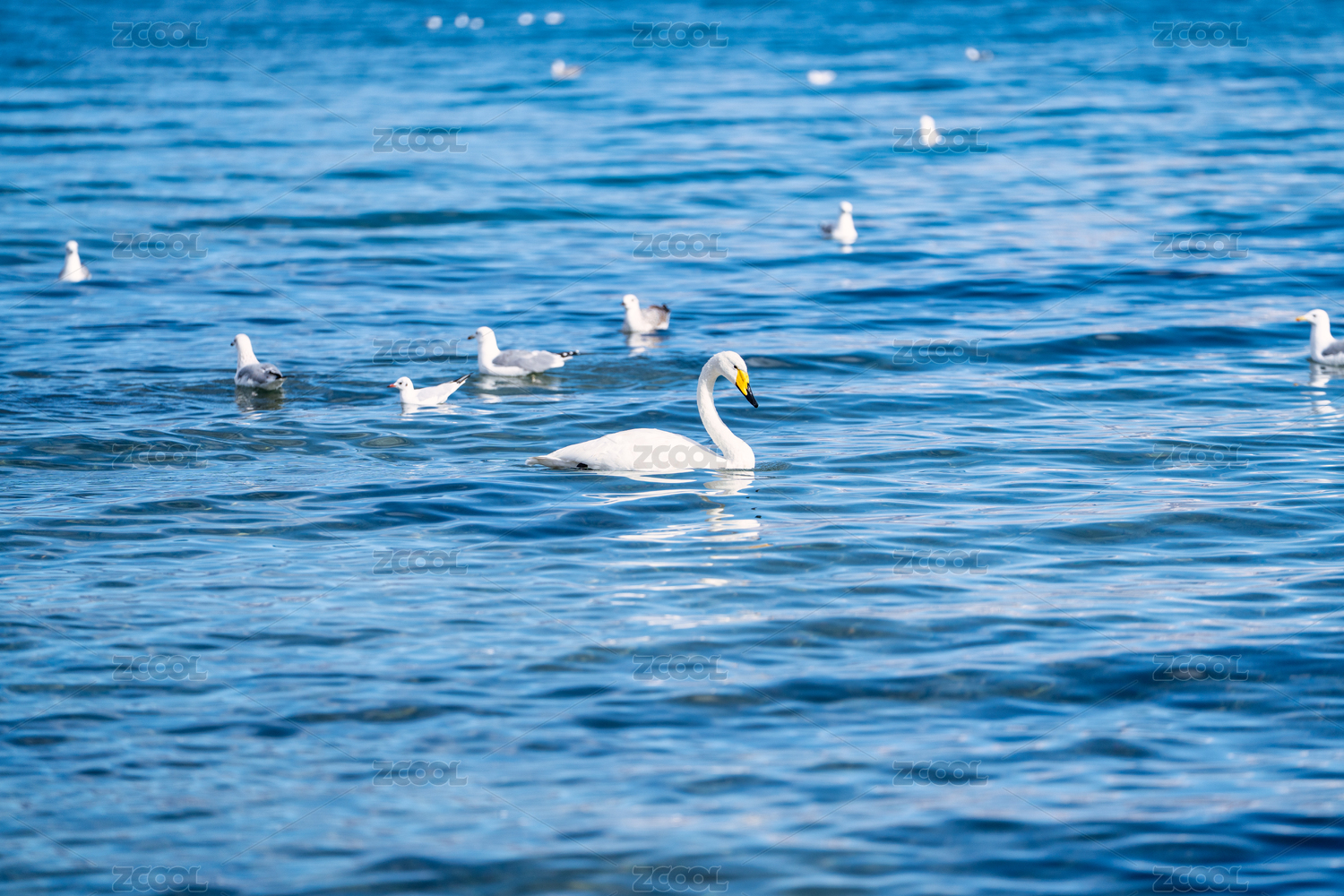 赛里木湖,天鹅,野生动物,蓝色,鸟类,湖,水,户外,水面,环境