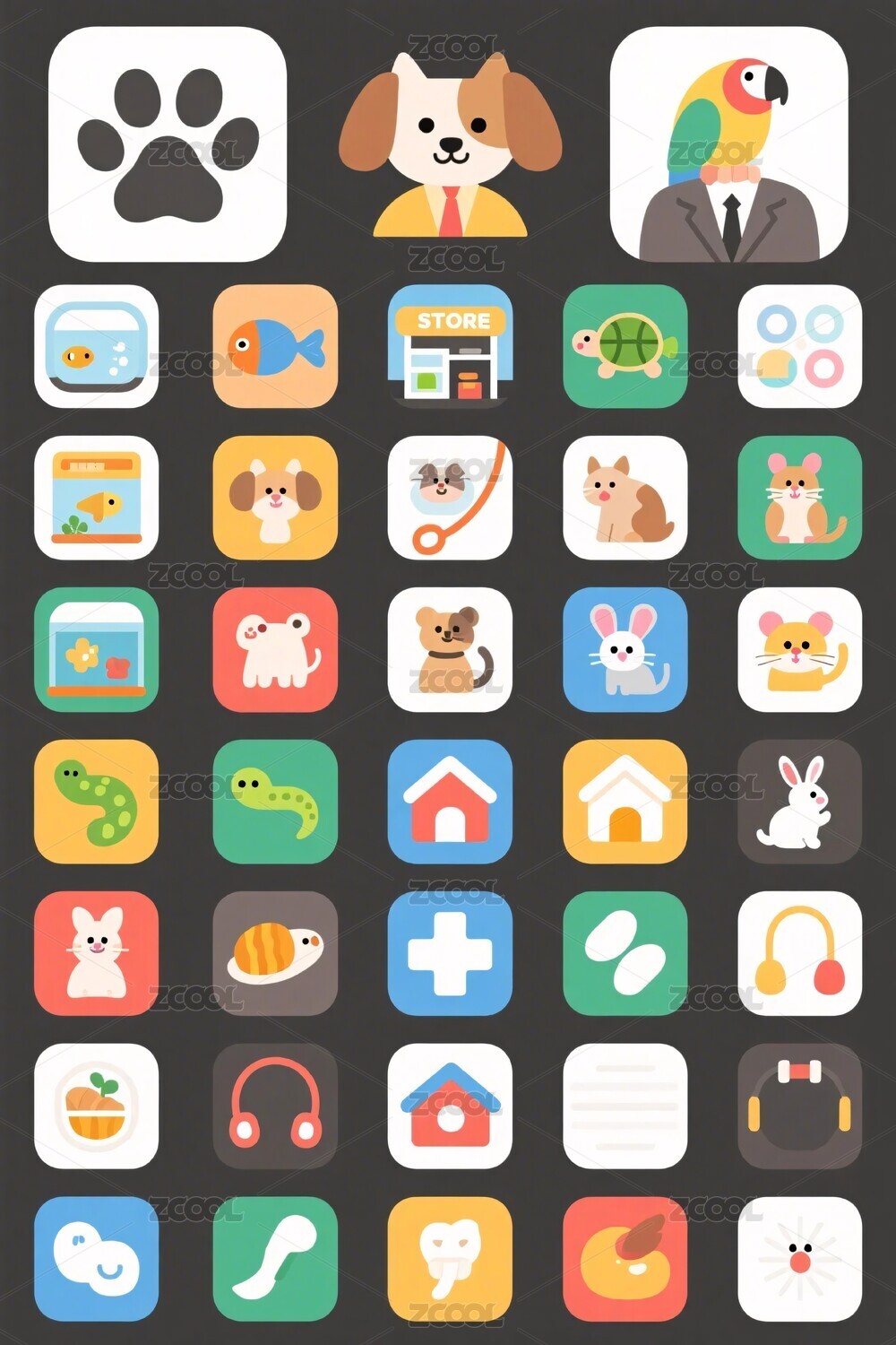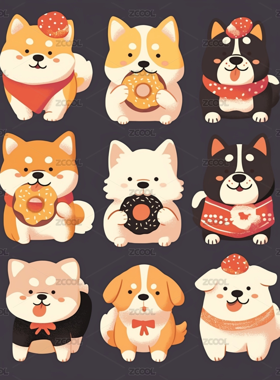 卡通可爱动物狗狗猫咪小猪兔子小熊