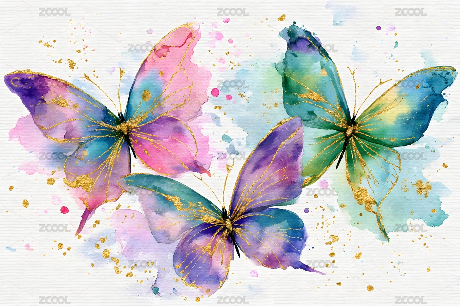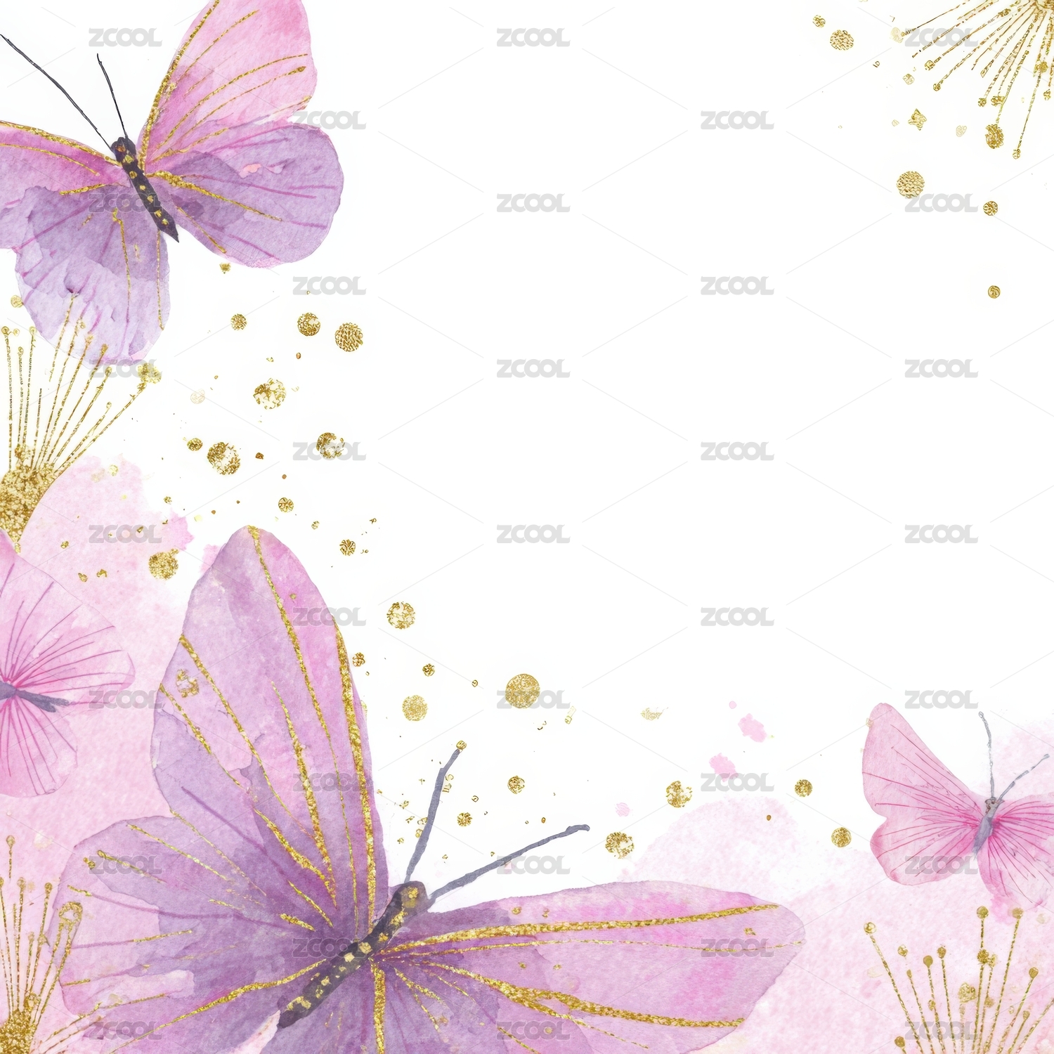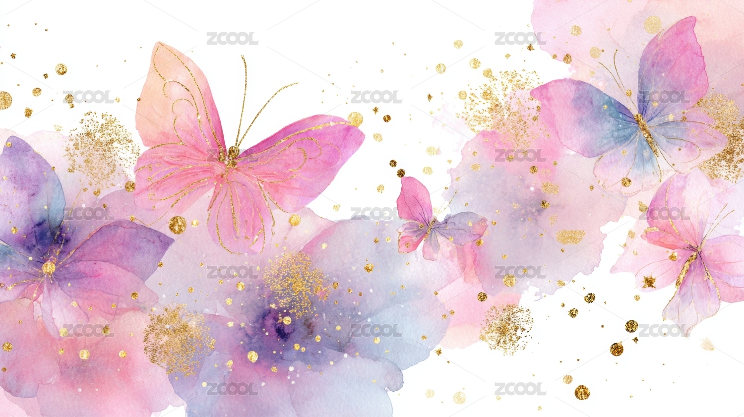 水彩蝴蝶与金色点缀