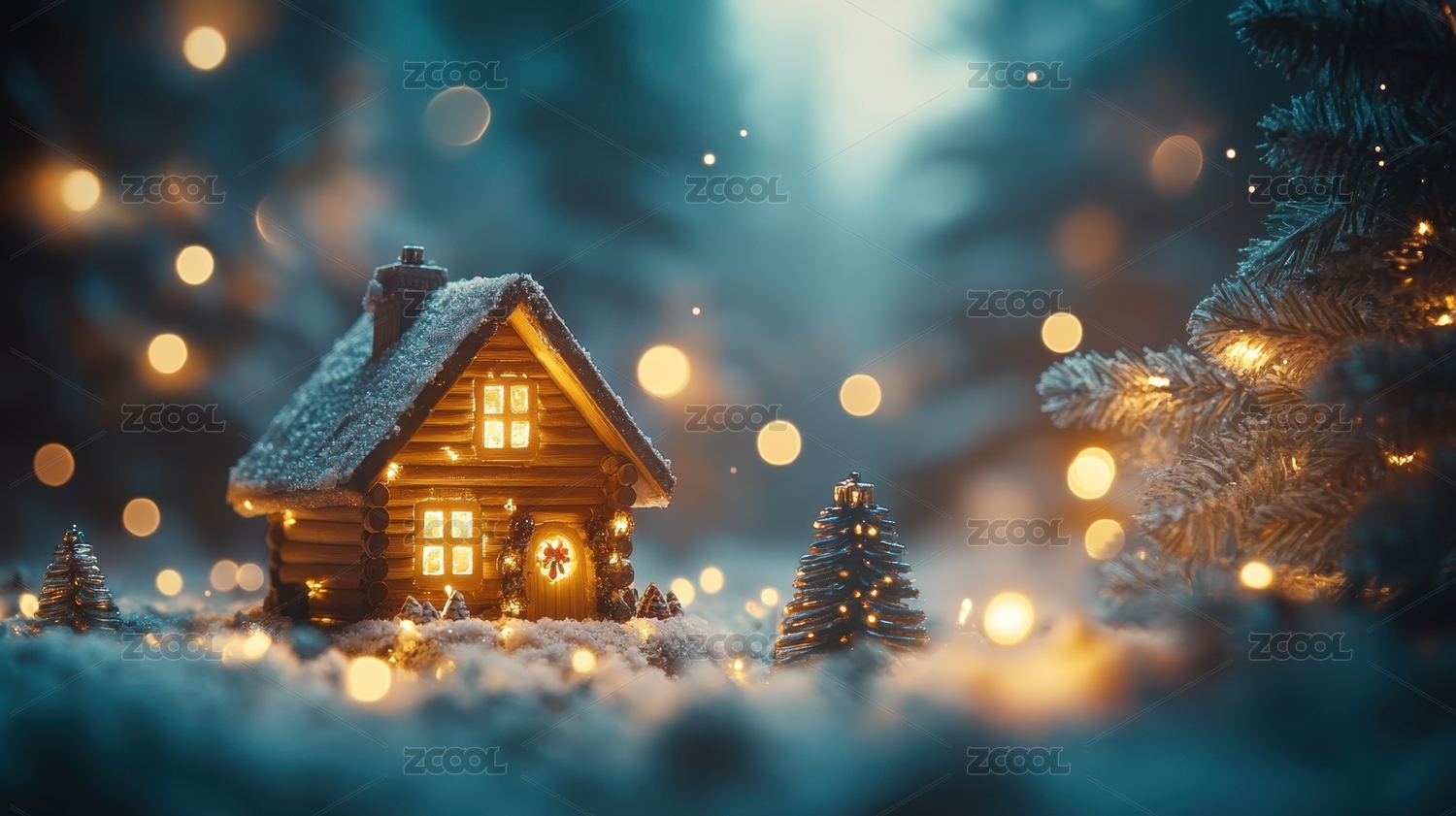 雪地上的圣诞小屋