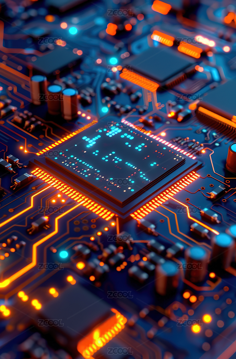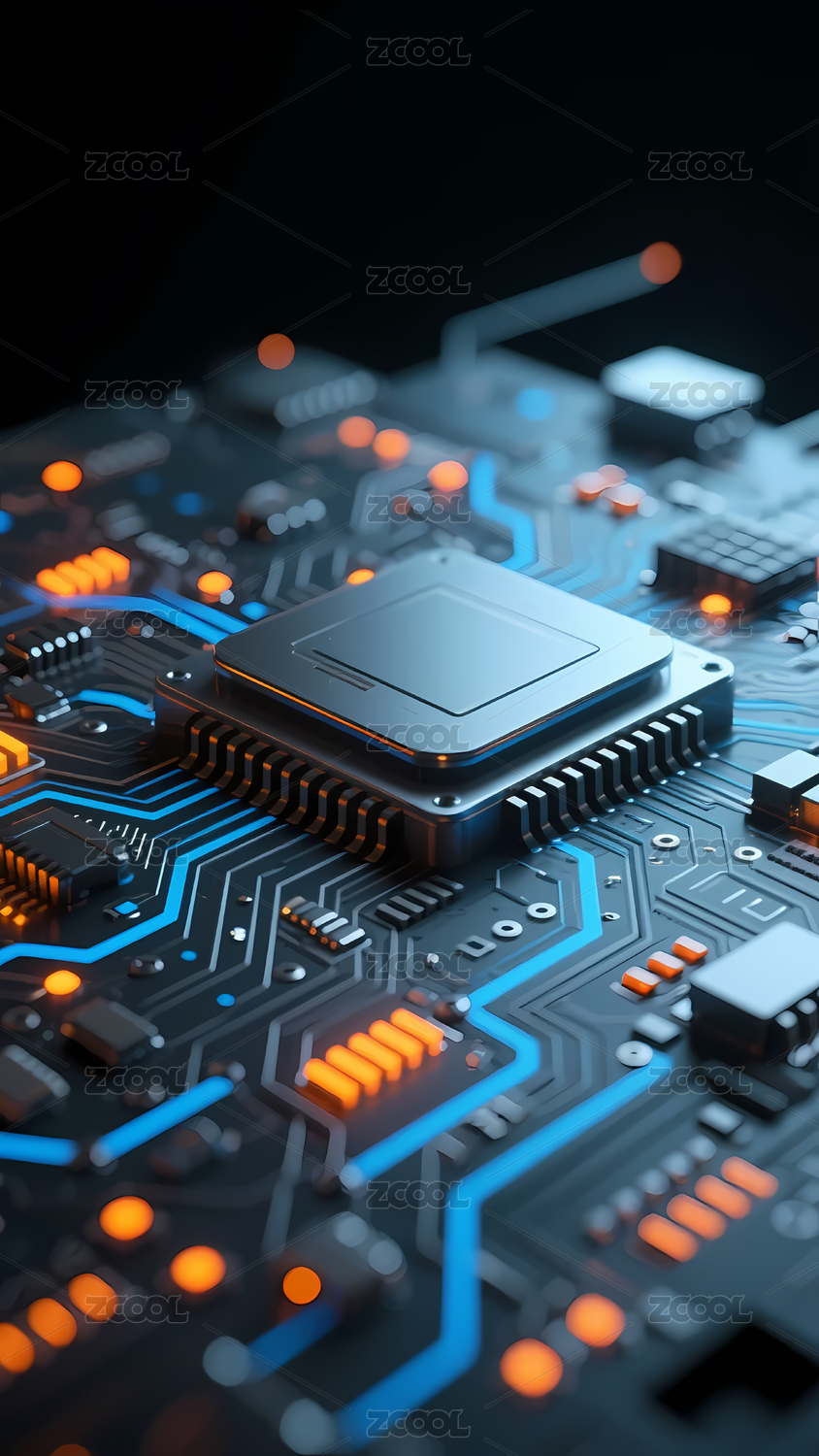 芯片蓝橙质感科技电路场景