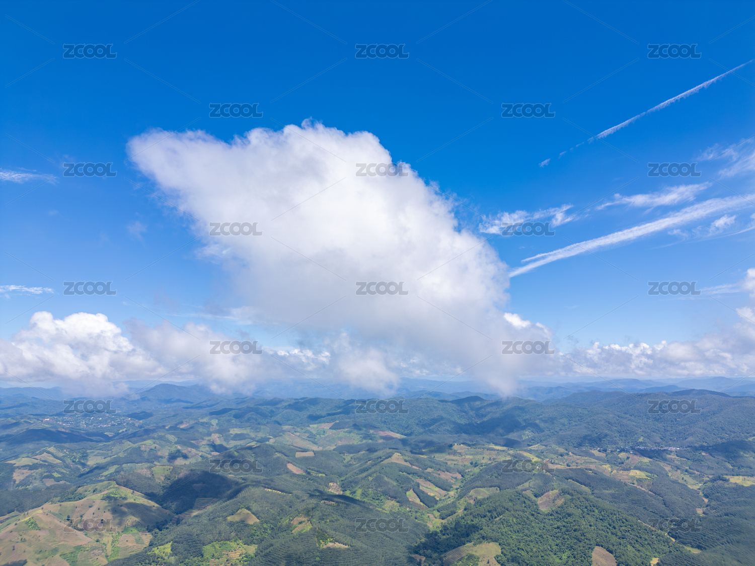 蓝天,白云,山脉,航拍,青山,群山,连绵,自然风光,晴朗,天空