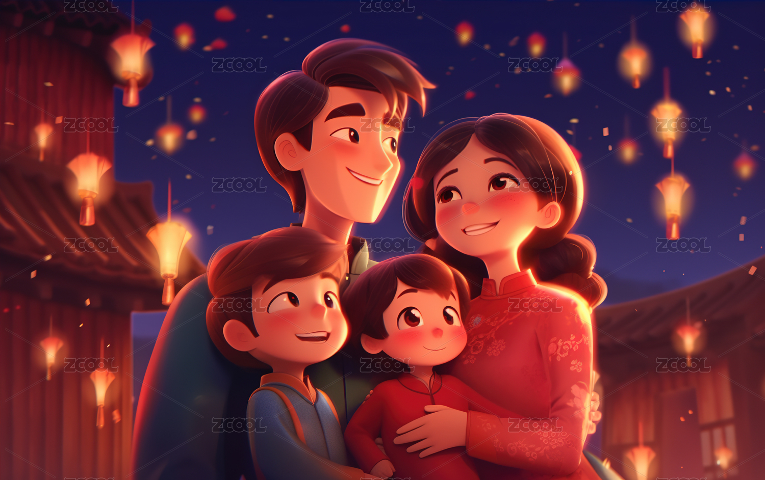 传统,节日,欢乐,微笑,灯笼,服饰,文化,团圆,家庭,灯光