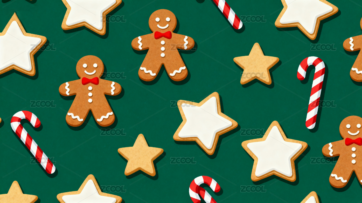 姜饼人,糖果棒,礼物盒,蝴蝶结,包装纸