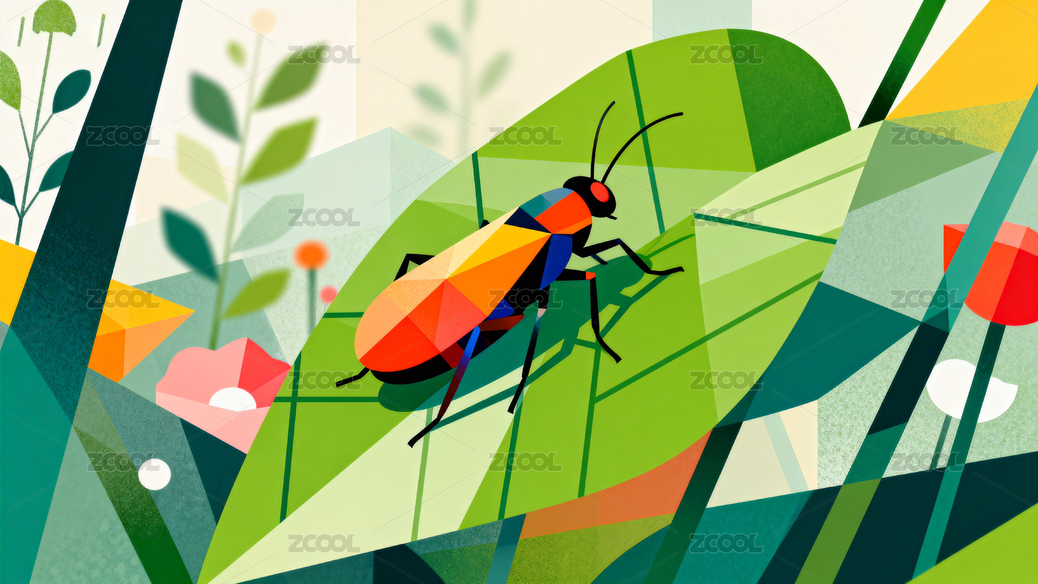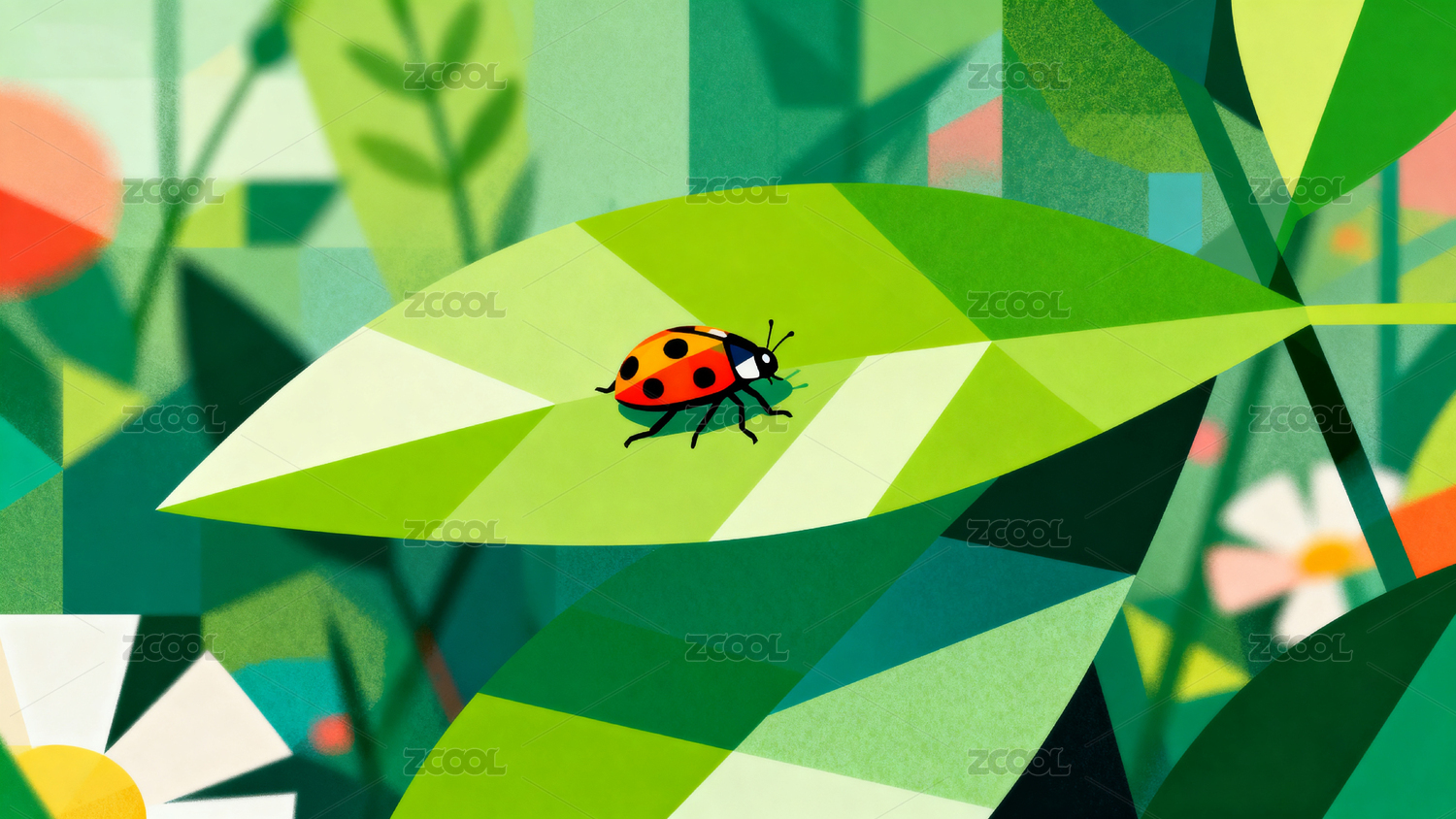 色彩,瓢虫,绿叶,花朵,几何,昆虫,植物,红色,黑色,黄色