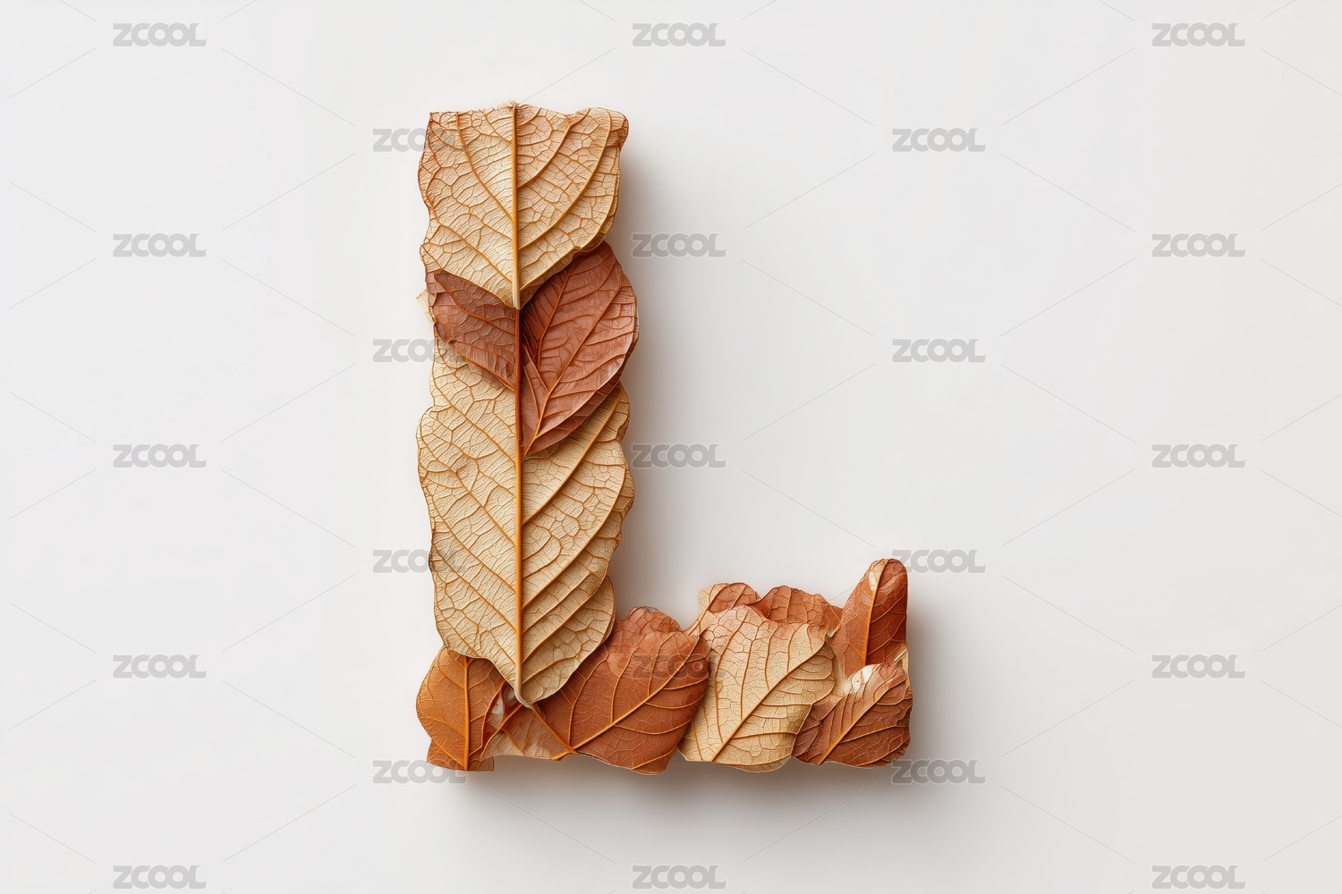 秋天枯黄树叶的英文大写字母L图案扁平背景