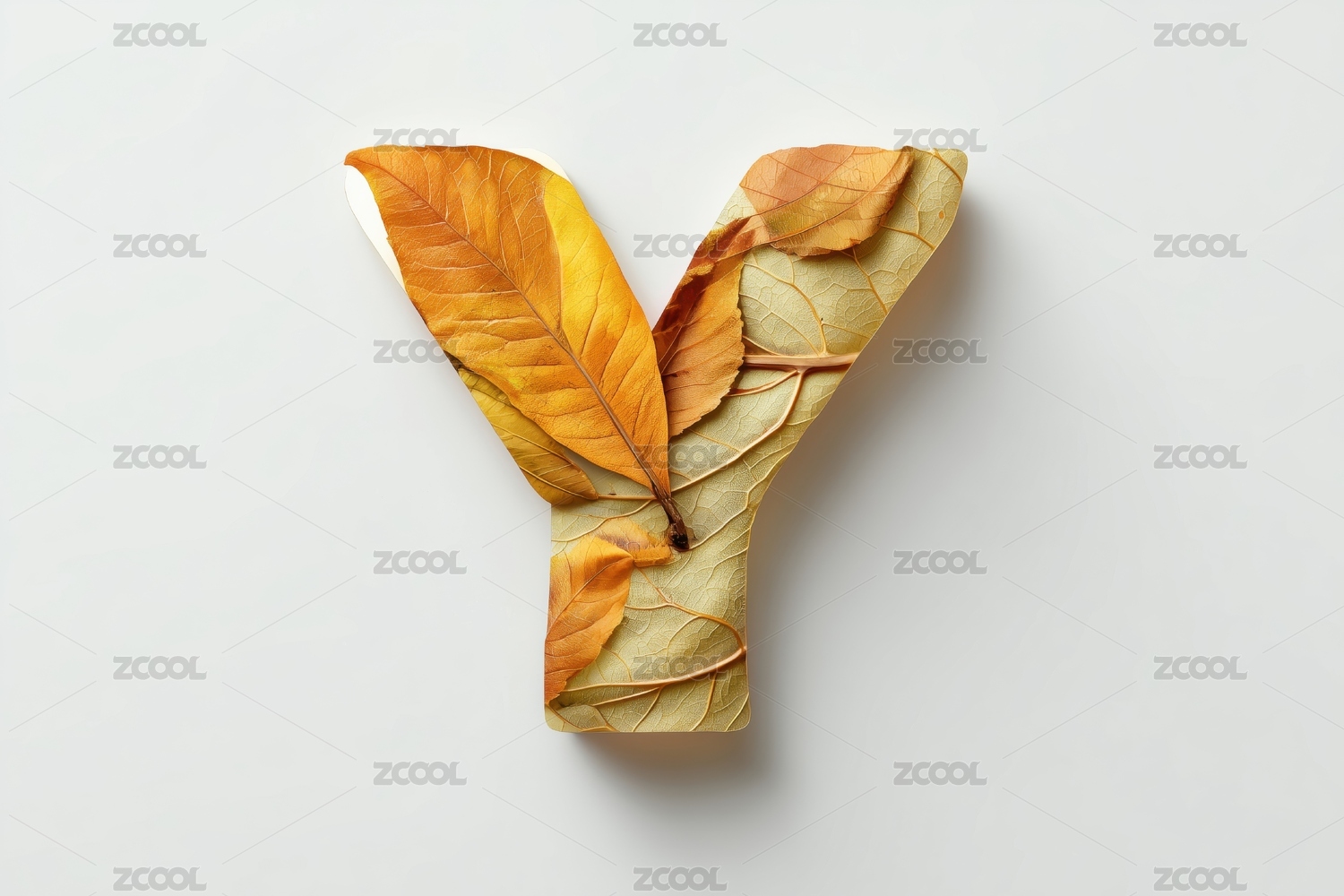 秋天枯黄树叶的英文大写字母Y图案扁平背景