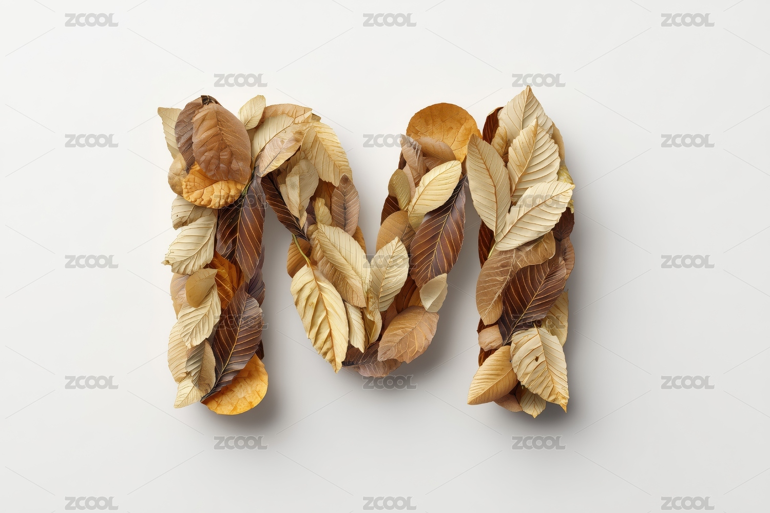 秋天枯黄树叶的英文大写字母M图案扁平背景