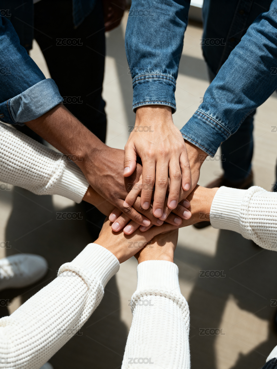 手,叠放,同心,协力,团结,人物,蓝色,白色,牛仔,棉质