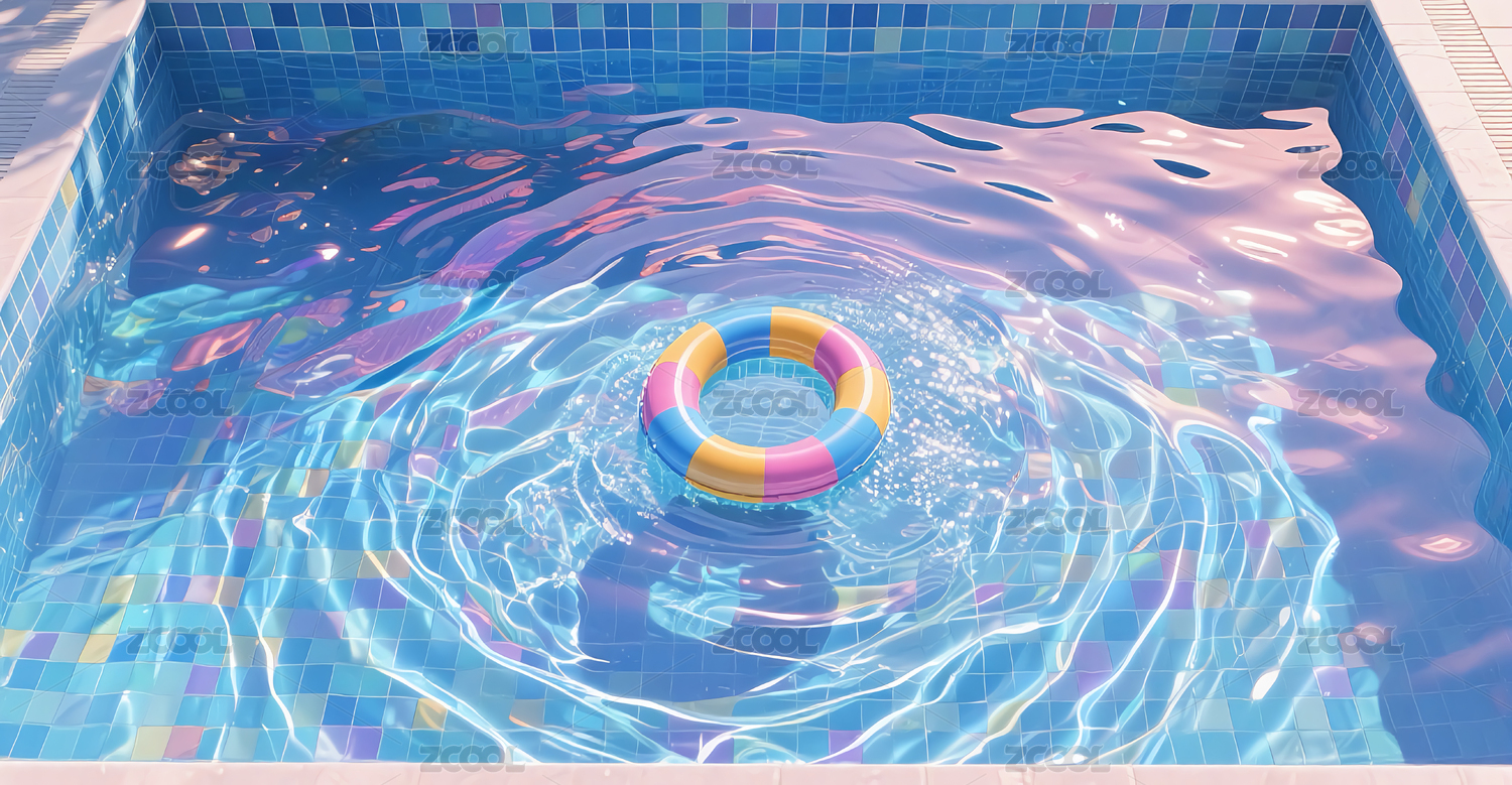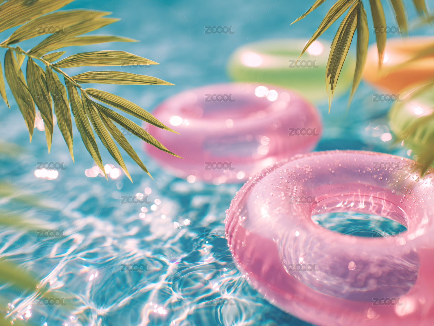 绿色,户外,阳光,水面,蓝色,泳池,游泳圈,棕榈叶,影子,环形