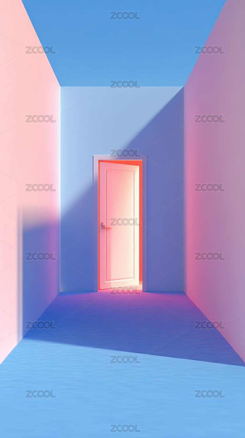 彩色走廊尽头的门