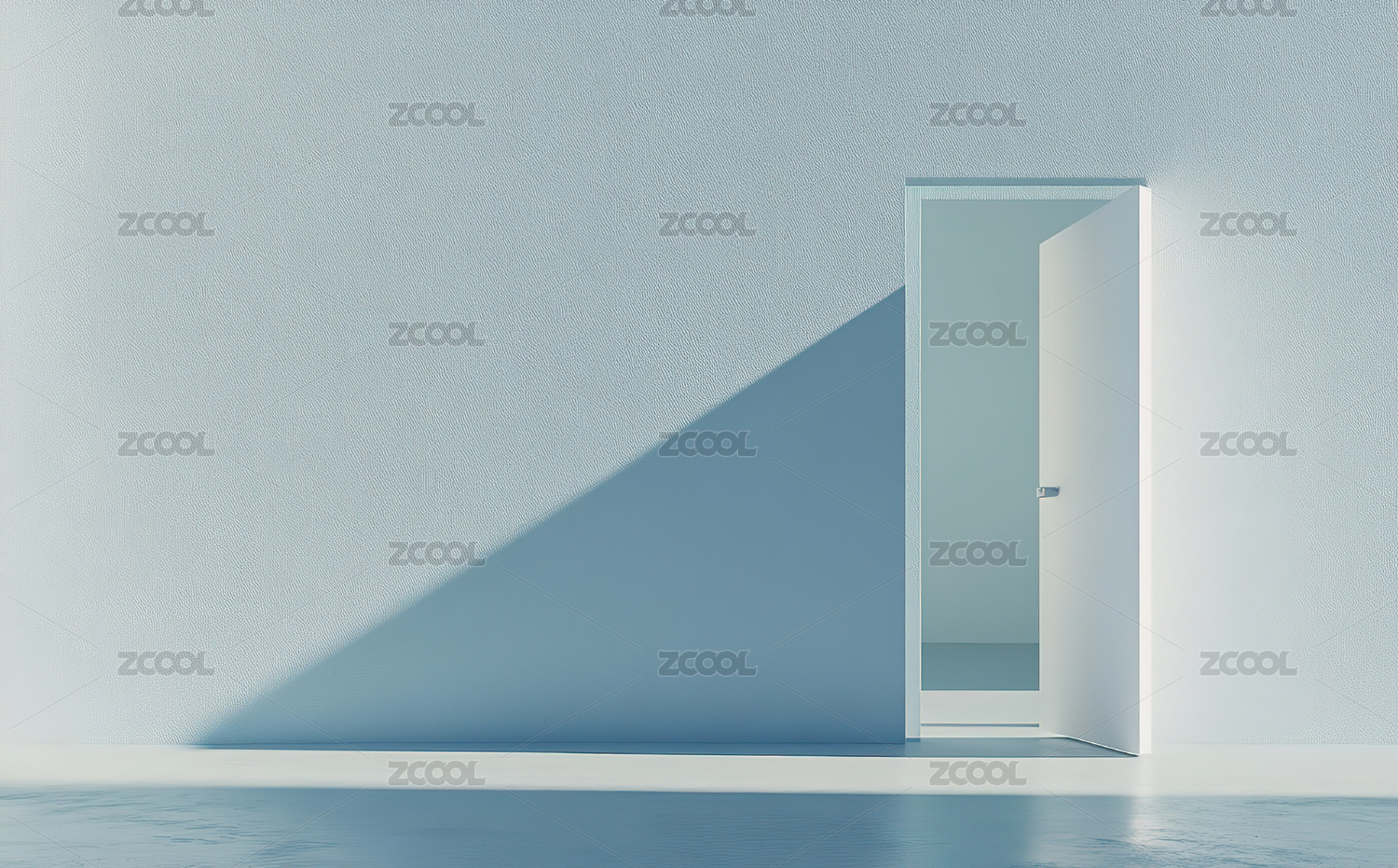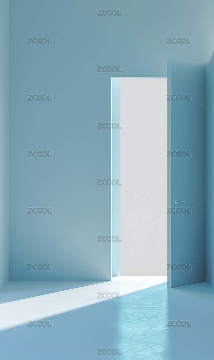宁静的蓝色走廊与白色门洞