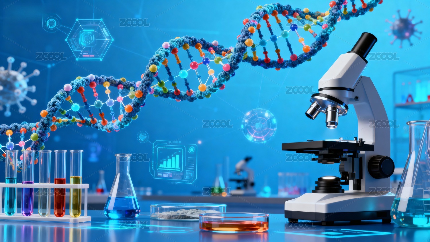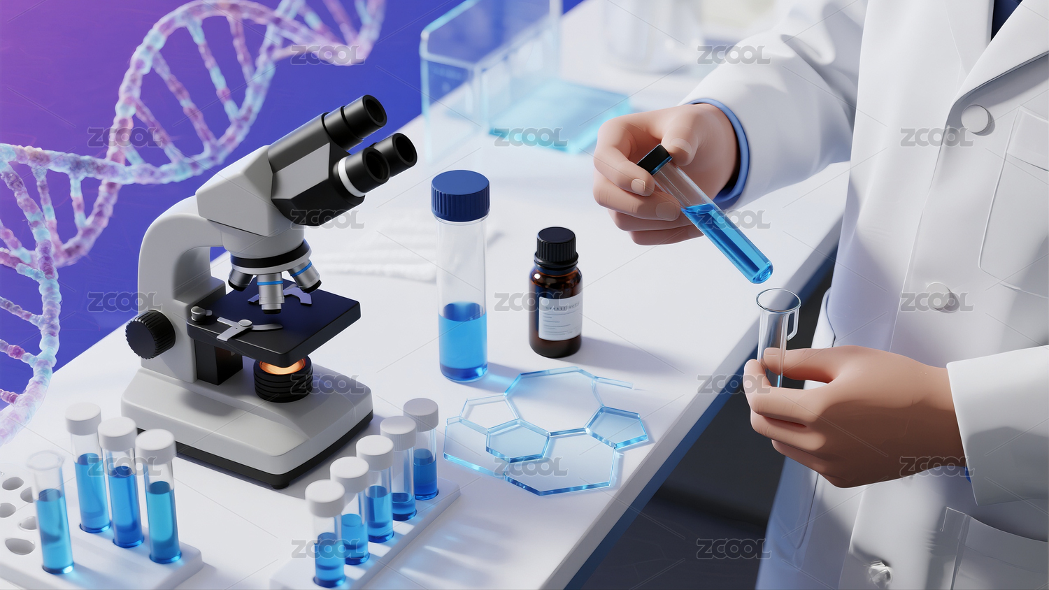 穿白大褂的人在实验室操作试管且旁有显微镜