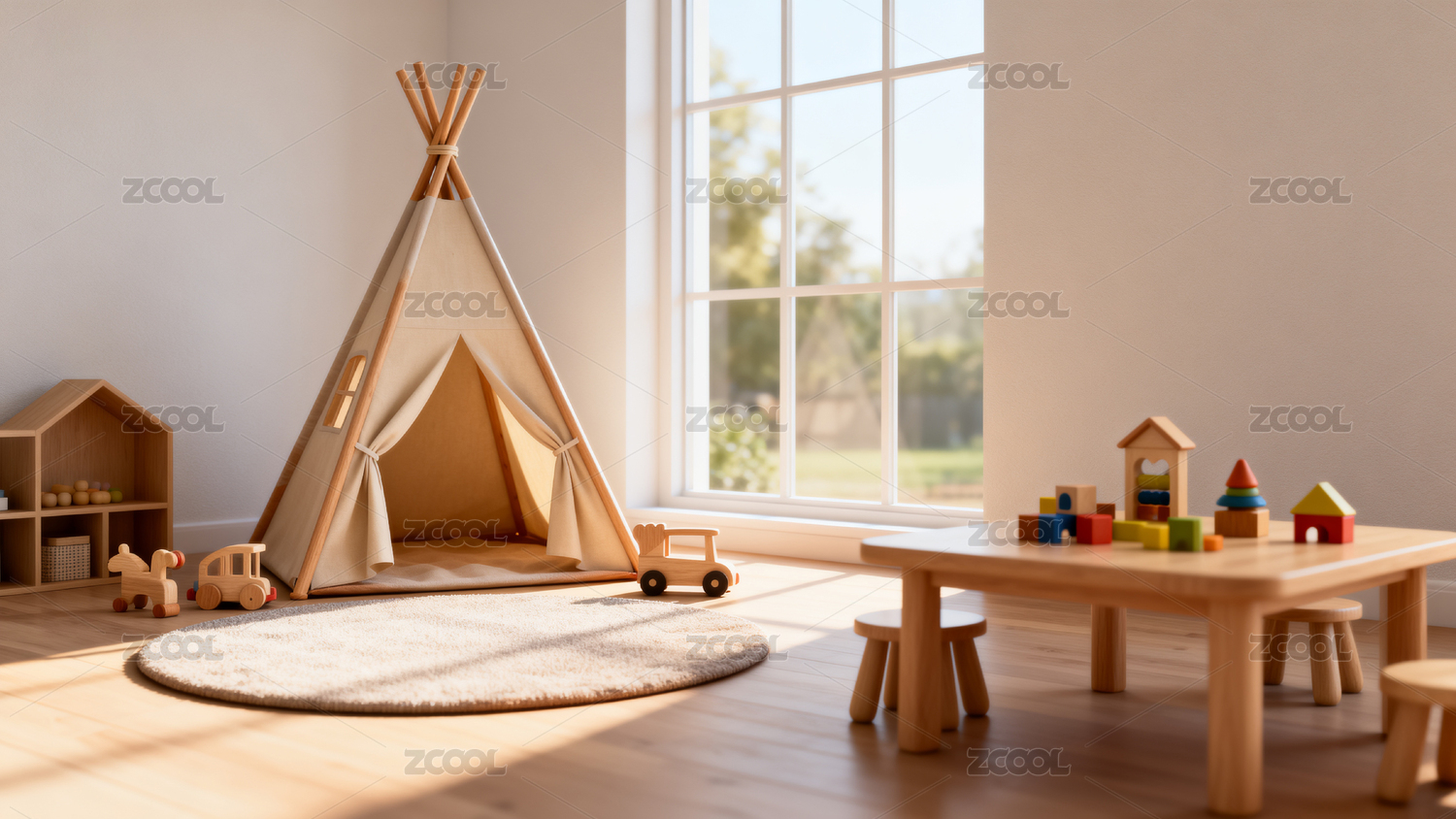 室内,窗户,休闲,绿植,儿童,玩乐,帐篷,积木,玩具,童趣
